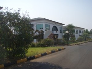 The village of square buildings in a gated and guarded compound was originally built years ago for a Pan African conference (Our building is called Somalia). It is now used for both offices and some exclusive private residences. It is located in an area where many of the NGOs and aid organizations are headquartered.