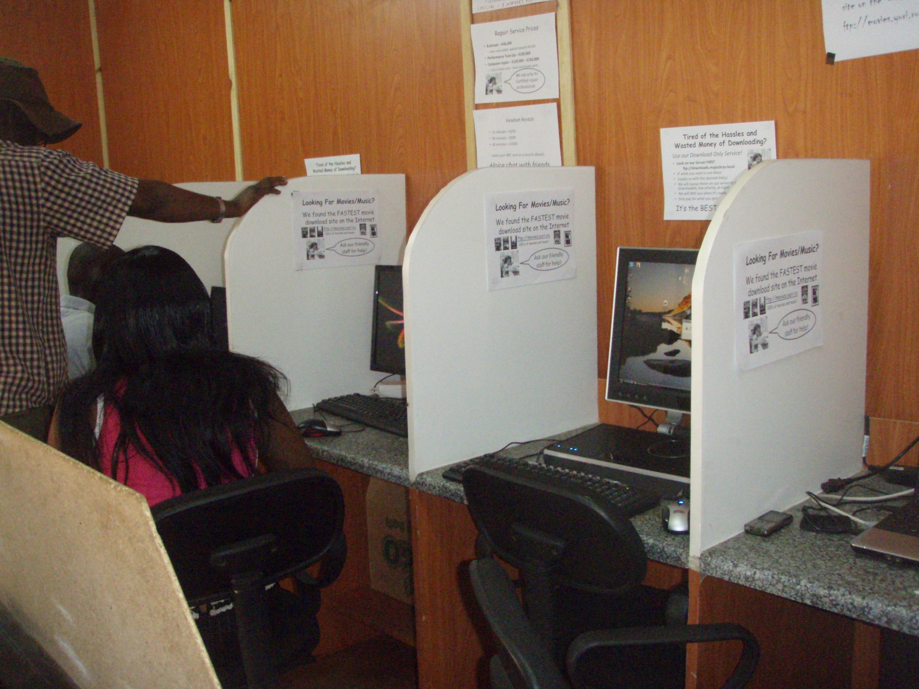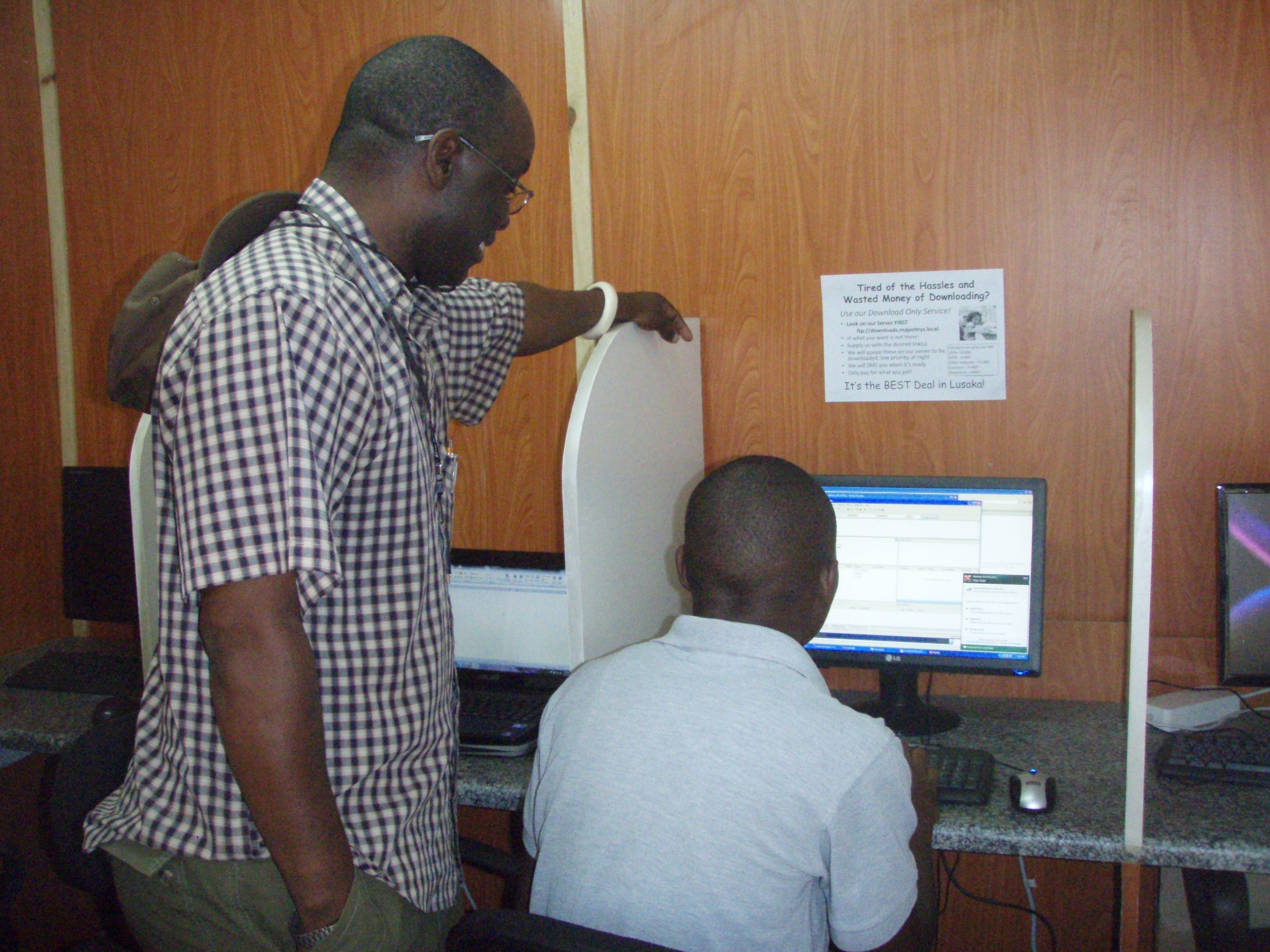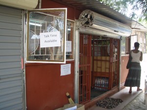 The café is open from early morning until 11pm each day, selling not only internet connection at eight stations, but offering wireless connection (students can buy time and work from their dorm rooms – the café is in a courtyard surrounded by the dorm complexes), “Talk Time” (cellular minutes you buy in various increments), typing service, printing and photocopying, and a wide variety of popular snacks and drinks. The really cool thing is that the connection Chrys has is THE fastest in Zambia! She made the choice to invest in the speed and bandwidth no one else (at least to her knowledge and experience) has…and this is a real selling point when you try to do anything online elsewhere. The challenge now is to get the word out about just HOW fast this is and use it as a major draw to bring customers in.