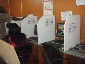 Chrys opened a small internet café less than a month ago on one of the local college campuses, with hopes of filling a niche for students who – at a rapidly growing pace here – are going on line. She did a preliminary survey on this campus and discovered that about 30% of the students already own a computer (desktop or laptop), and the majority of them are either on Facebook and email or are trying to get there. While there were originally a couple of additional Zambian friends who were supposed to invest, those arrangements fell through but Chrys – undaunted – underwrote construction, negotiated placement on the campus, and brought her dear friend and neighbor, Marjory, on board to partner in the venture. Marjory’s family (5 kids and assorted nephews and nieces) are active staff at the café – and they are all making it work.