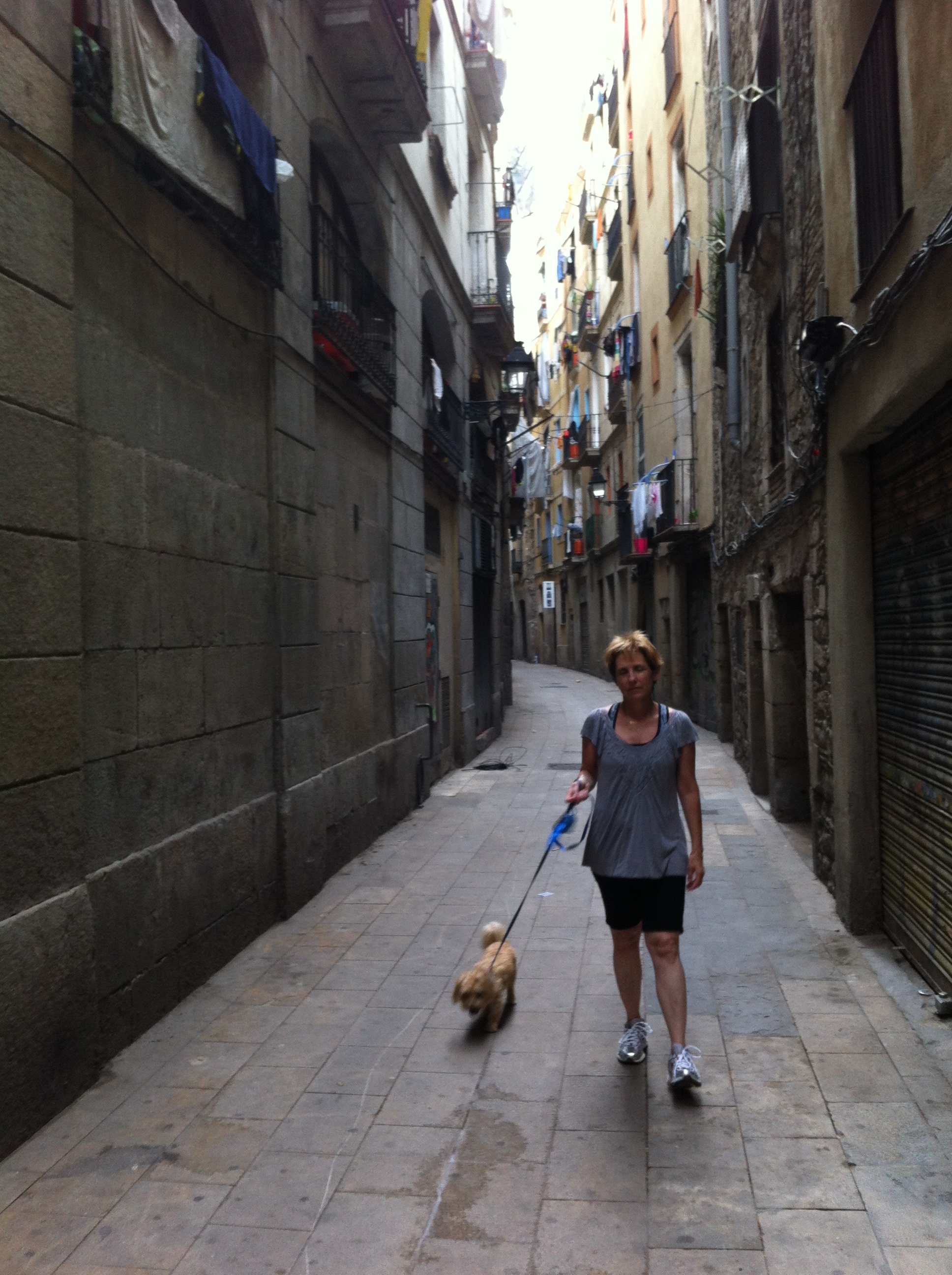 We have now relocated to an area called Tres Torres (Three Towers – not sure why – need to research) in the northern part of the city – generally known as Zona Alta. The sections of the city in Zona Alta – Gracia, Tres Torres, Sarria, Pedralbes, Turo Park, to name a few, are districts that were annexed into the proper city of Barcelona as the population expanded. Some of the districts have unique “personalities” that we are having fun discovering, and most (not all) have much more new construction (like the last 100 years rather than centuries ago). It is much more like living in a modern urban city extension than living in another century! Streets are wide, traffic is plentiful but generally flows well thanks to really swift roundabouts and well- maintained roads and signals…lots of green space peppered throughout the neighborhoods and terrific bike paths that get you from one end of the city to the other without fearing for your life…both local merchants and a couple of large shopping centers easily accessible by metro, tram or public bus (and we do LOTS of walking as well)…very very good gym facilities in each of the districts – some city-run, others privately run chains…and while the density and volume of cafes and other daily services is less than in el Born, there is plenty and most within walking distance. We have our local markets (expensive, cheap and cheaper), local cafes with wifi (whew!), some upscale restaurants, and soooo many teenage girls it’s hilarous! A few things are totally apparent here: