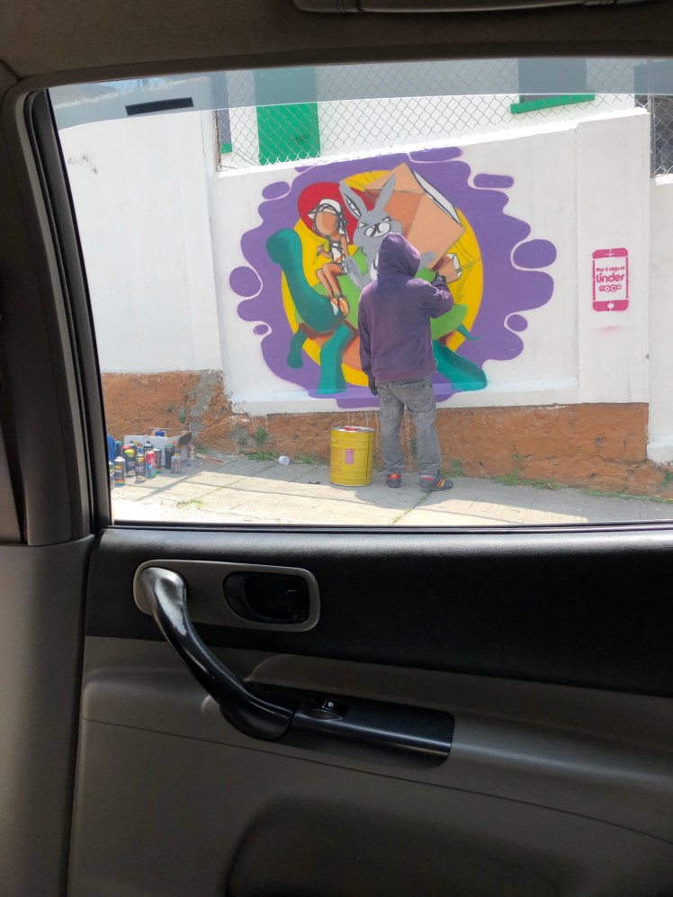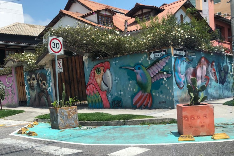 Our next stop was in a lovely neighborhood called La Floresta that has welcomed street artists to paint incredible murals on the walls surrounding homes. It reminded me of the up and coming neighborhood in Miami – Wynwood – that Ruthie loves so much. Both places have given young artists an urban palette they might not otherwise be able to have for expressing great talent.