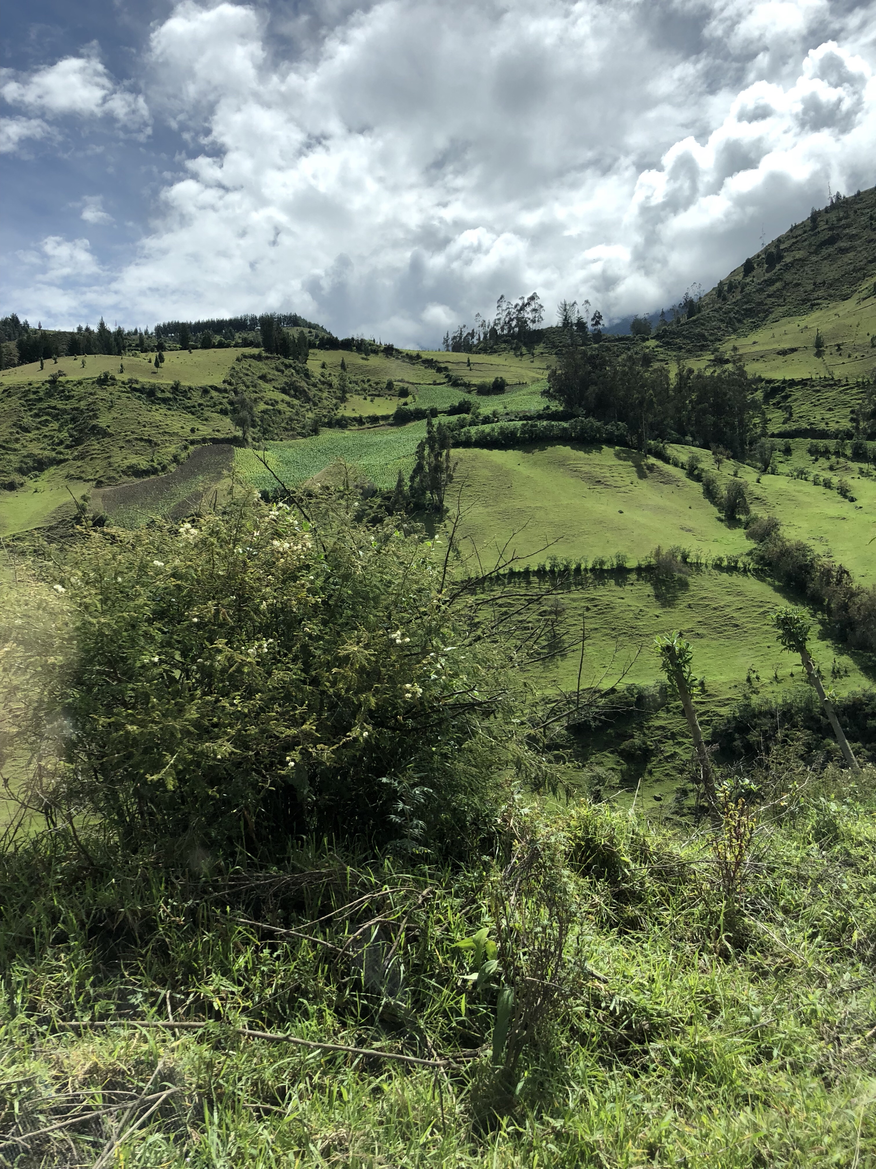 Discussing our next stop in the mountains and how we planned to get there by buses, Sebastian would not hear of that. Apparently not only are the bus routes confusing, but he and Andrea thought the busses held potentially dangerous scenarios…getting mugged or worse. We had heard a range of concerns as well as “no problemo” from other people we spoke to, but clearly Sebastian was having none of it. A few calls later he had arranged a taxi driver to take us literally door to door. Angel was a very sweet Ecuadorian and a master at driving the very winding road that we had to pick up for the last hour or so to get to the hostel we booked. The drive took about three hours – the first hour was just getting out of Quito! The traffic in and out of the city is horrific – the main road is just not wide enough for all the cars that need to make the commute even though the road is well-paved and maintained. The second hour was smooth on the Pan American Highway – really impressive compared to the terrible roads in Costa Rica, for example.
