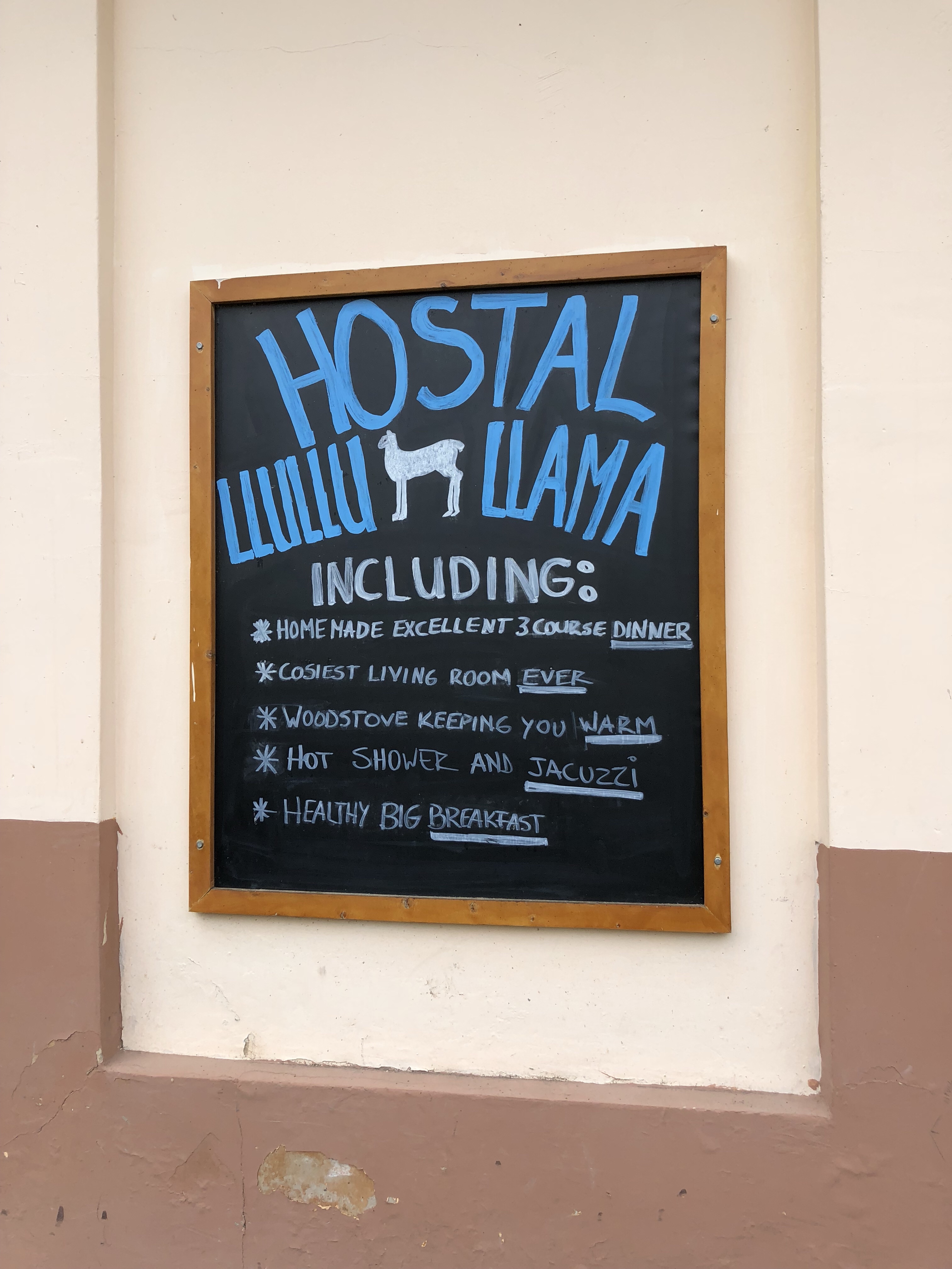 LluLluLlama was recommended to us by the Galapagos booking agent in Quito once he knew we wanted to have an experience in the Andes where we could meet local people and get a sense of their culture. He got it right. It is perched on the hillside looking down on a beautiful valley.