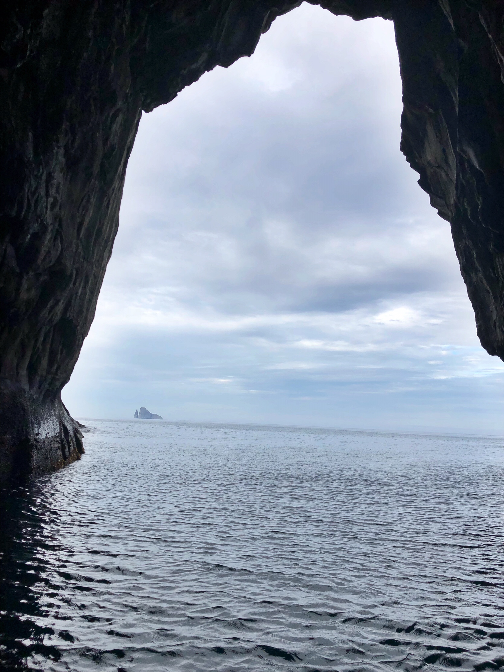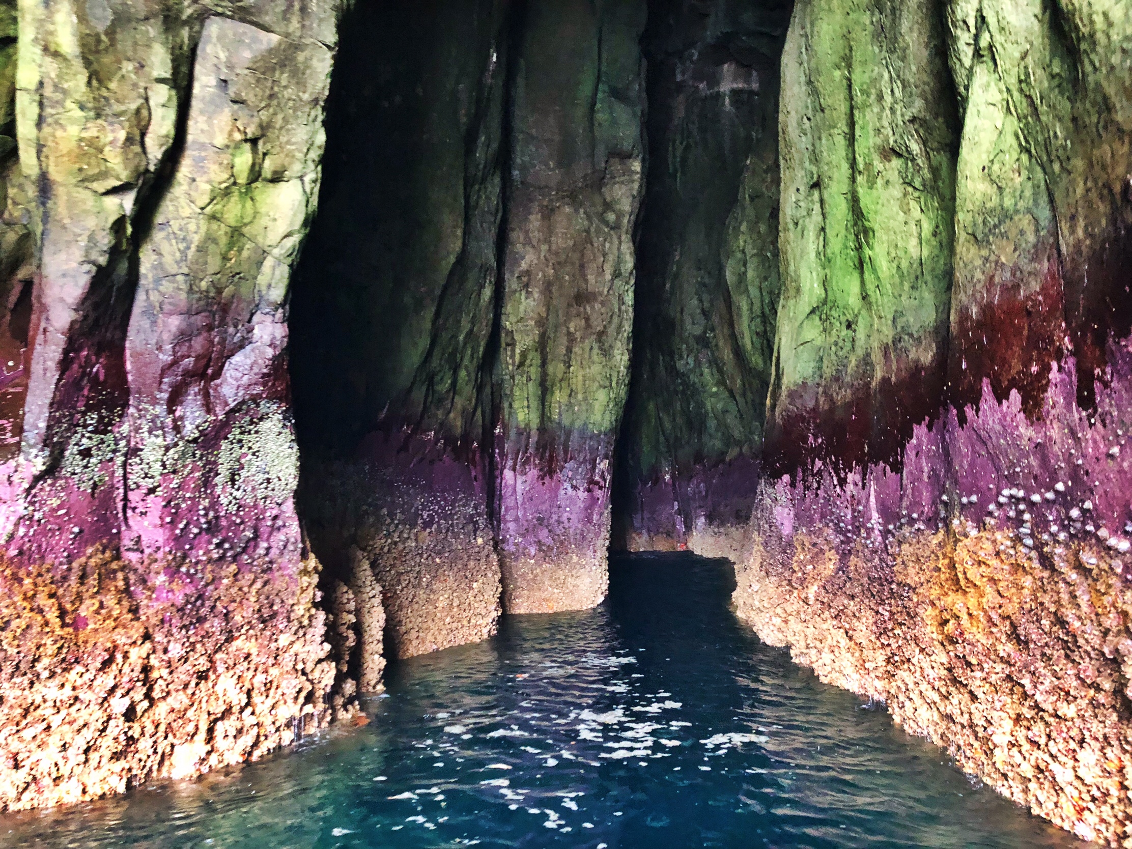 We explored one part of the coastline in pangas, and along the way we got to cruise through some incredible natural caves with all sorts of crawlers – black and red crabs – along with hearty barnacles and a dramatic view of the geological evolution of the islands in the striations in the cave walls.