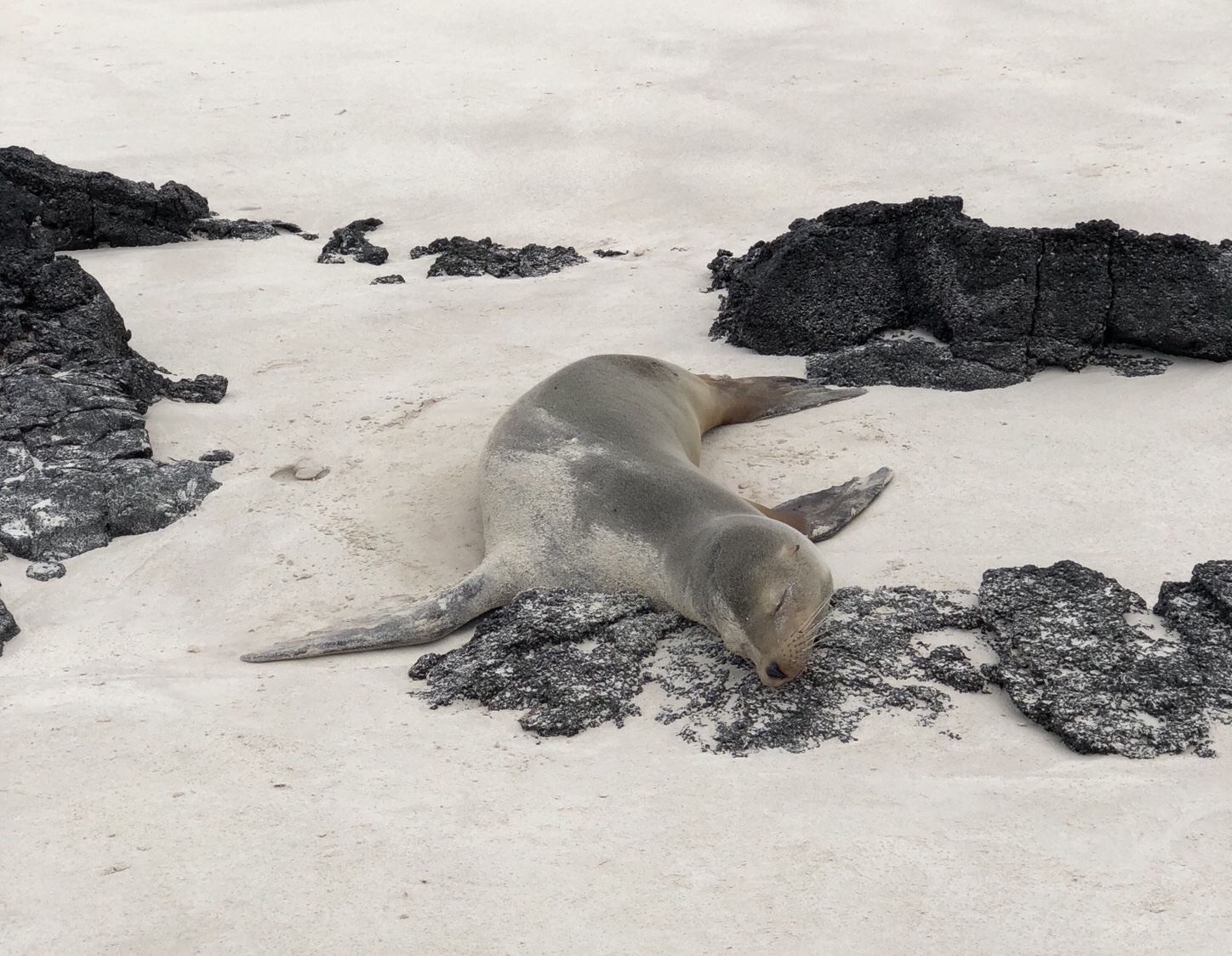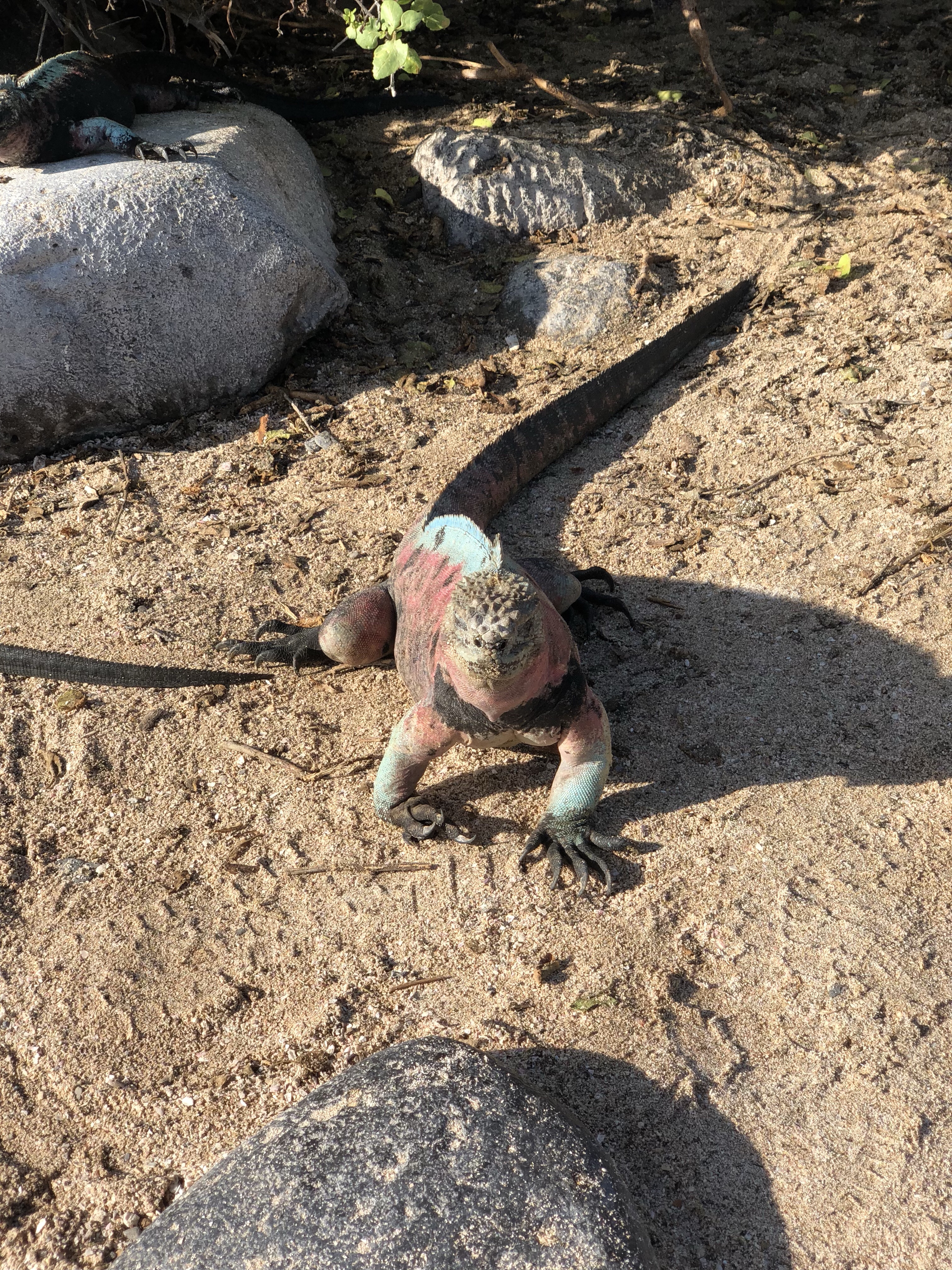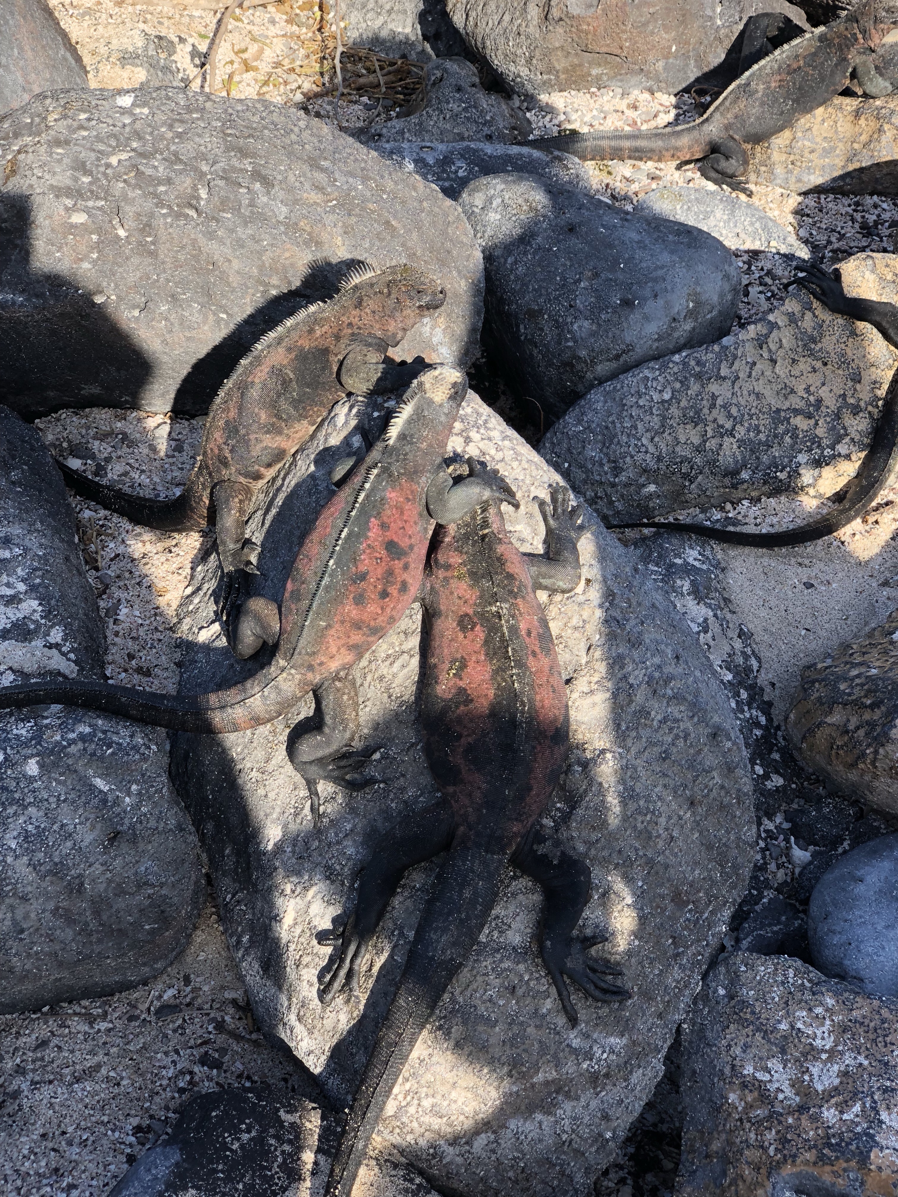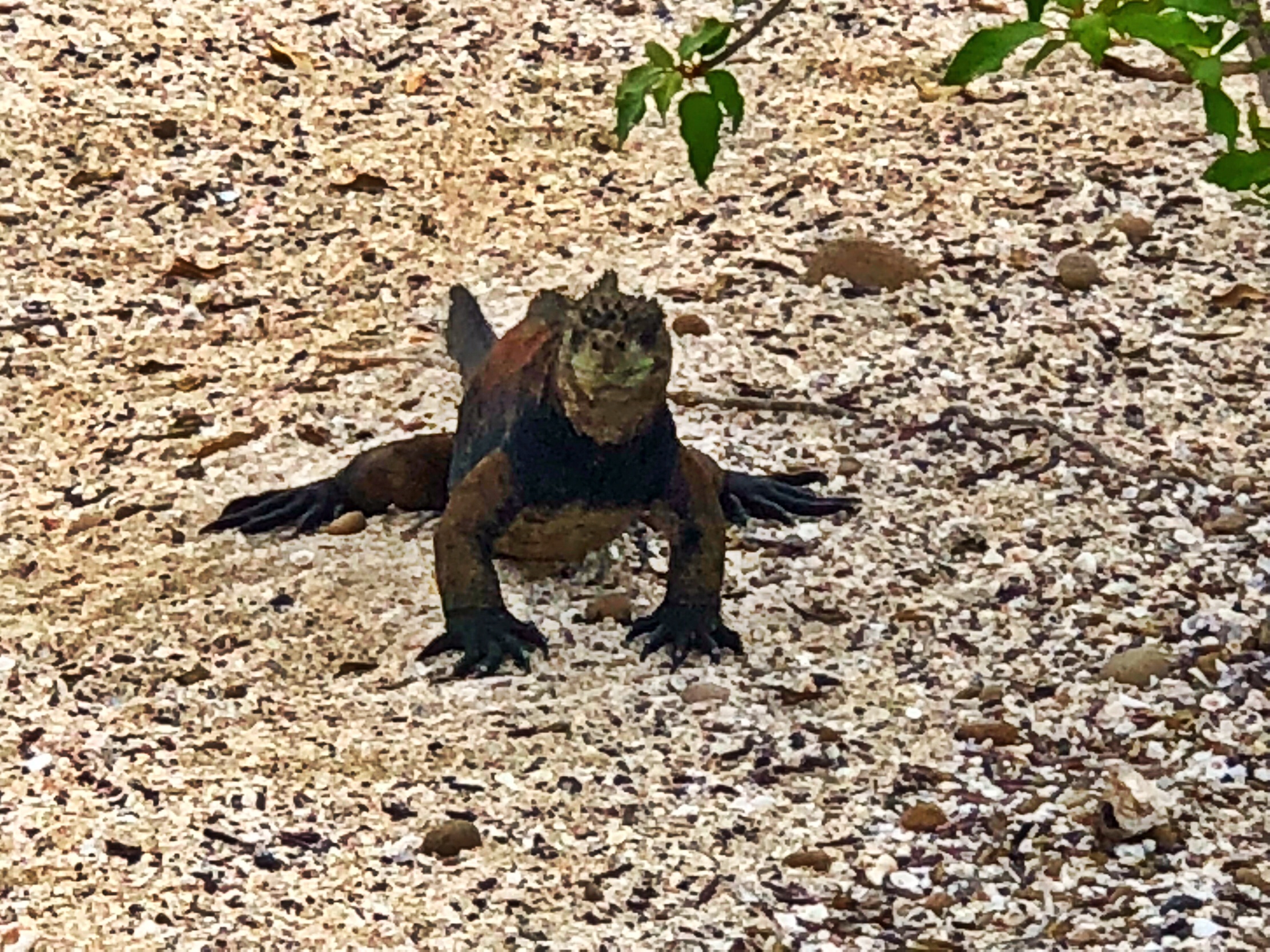 Our first “wet landing” plopped us on a beach to walk among sea lions lazing in the sun. We saw babies nursing, sleepy elders splayed across rocks, and then came across land iguanas trying to be inconspicuous among the trees.