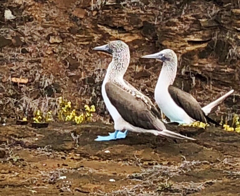 As we hiked inland we got what for me was a thrilling highlight of the trip – close encounters with the boobies! Ok, get the jokes out of the way now 🙂 because we made them all. In reality, this was so cool. We came across lots of blue-footed boobies and even got to watch their famous courtship dance…sort of…