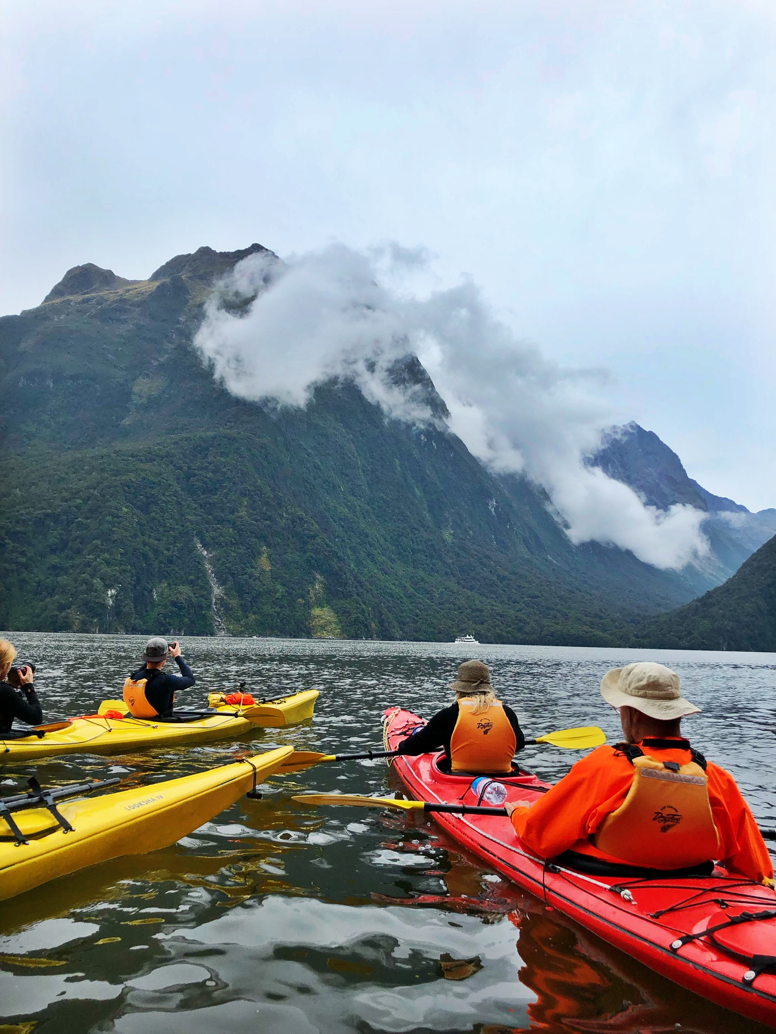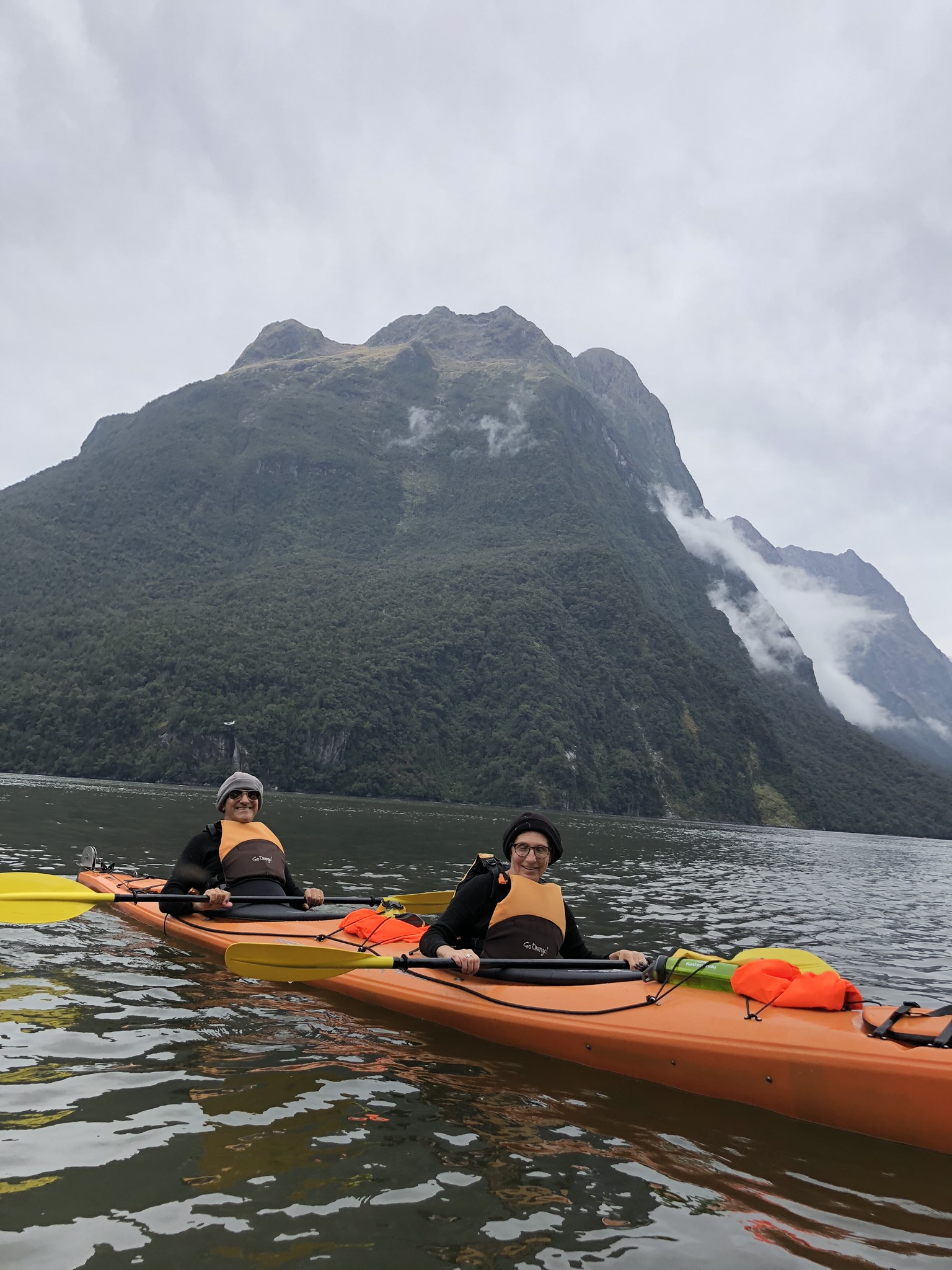 To get to Milford Sound you have to wind your way through incredible mountains and canyons carve millions of years ago by cascading glaciers. Our tour bus guide was both a bit of a comedian and a great source of information about the landscape – we had a lot of fun both to and from the kayaking learning about the geological history and groaning at his bad jokes.