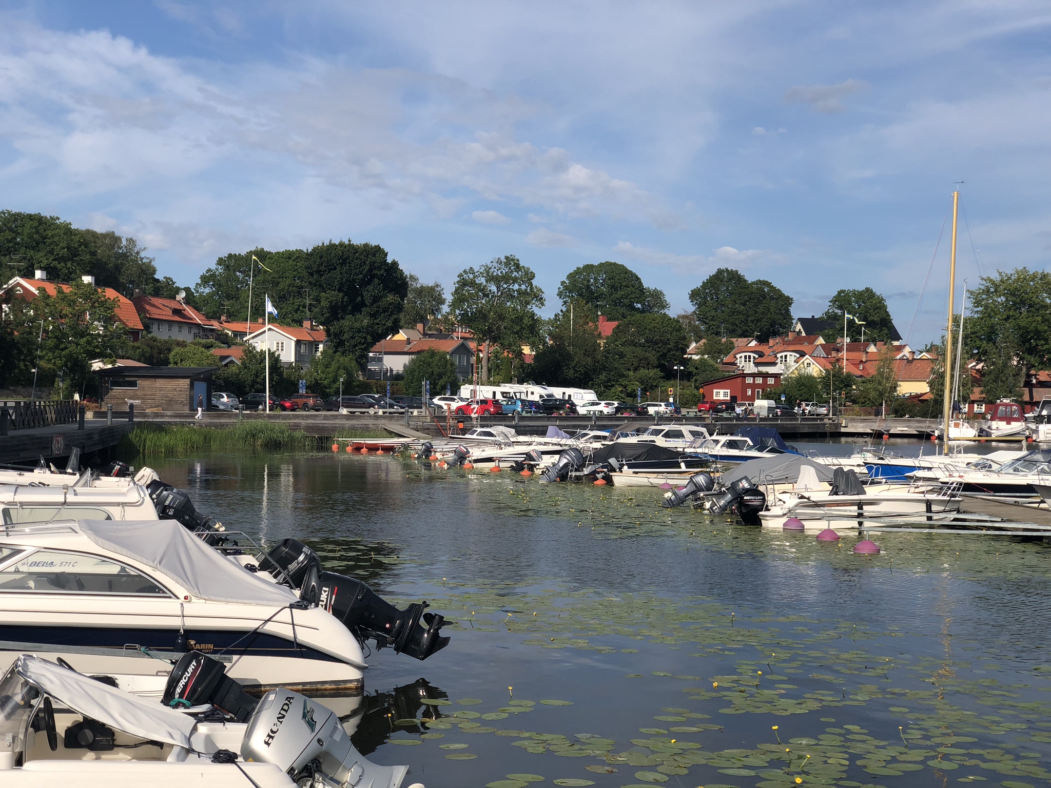 Our next stop was the small and very historic town of Sigtuna. It’s known for housing the stone ruins of St. Olaf’s, St. Lawrence’s and St. Peter’s medieval churches. St. Mary’s Church that was built by Dominican friars, still stands in the center. Stora Gatan, said to be Sweden’s oldest main street, dates back to the time of 10th-century King Erik the Victorious. Today it’s lined with touristy shops and restaurants in traditional wooden houses. These shops and pubs are so small that you have to stoop to get in if you are one of today’s tall folks. We walked a lovely path through town then all along a boat marina and adjacent waterfront…it seems this relatively quiet town has now become much of a retirement community, housing for airline personnel because of proximity to the airport, and a retreat for weekending locals.