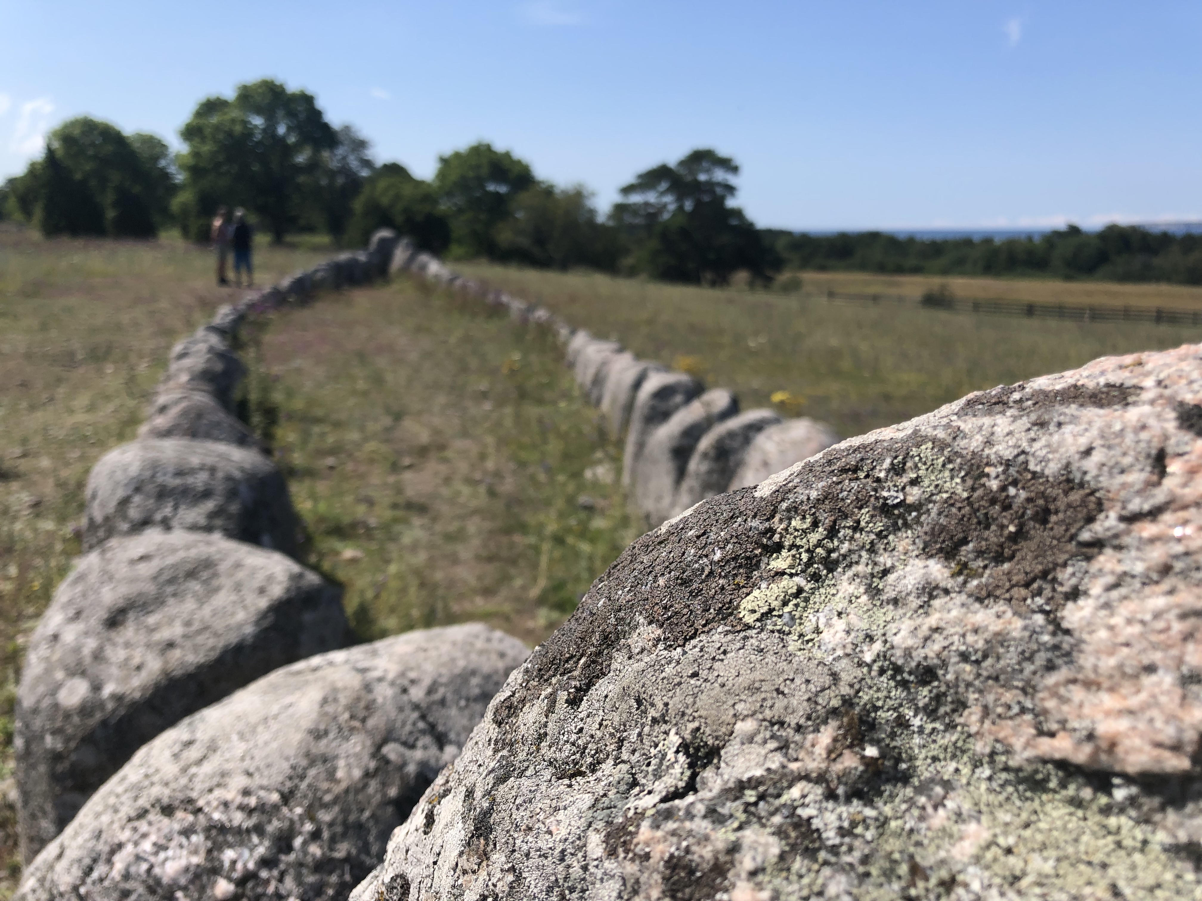We spent the next day exploring the southern end of Gotland and the recommendations our ferry friends made were spot on. Along the route down the island we happened upon a very unusual grave site (called Gannarve) – a boat shaped set of stones that apparently housed the remains of ancient folks from the area. These date back to the late Bronze Age and about 350 of these sites have been found on Gotland. When the deceased was cremated, the remains were crushed and cleaned and placed in a house-shaped urn along with some bronze items. The urn was placed either near or in the boat-shaped grave. It wasn’t clear if this was a site for just one person’s burial or many, but the spot had a lovely view of the surrounding fields and water in the distance.