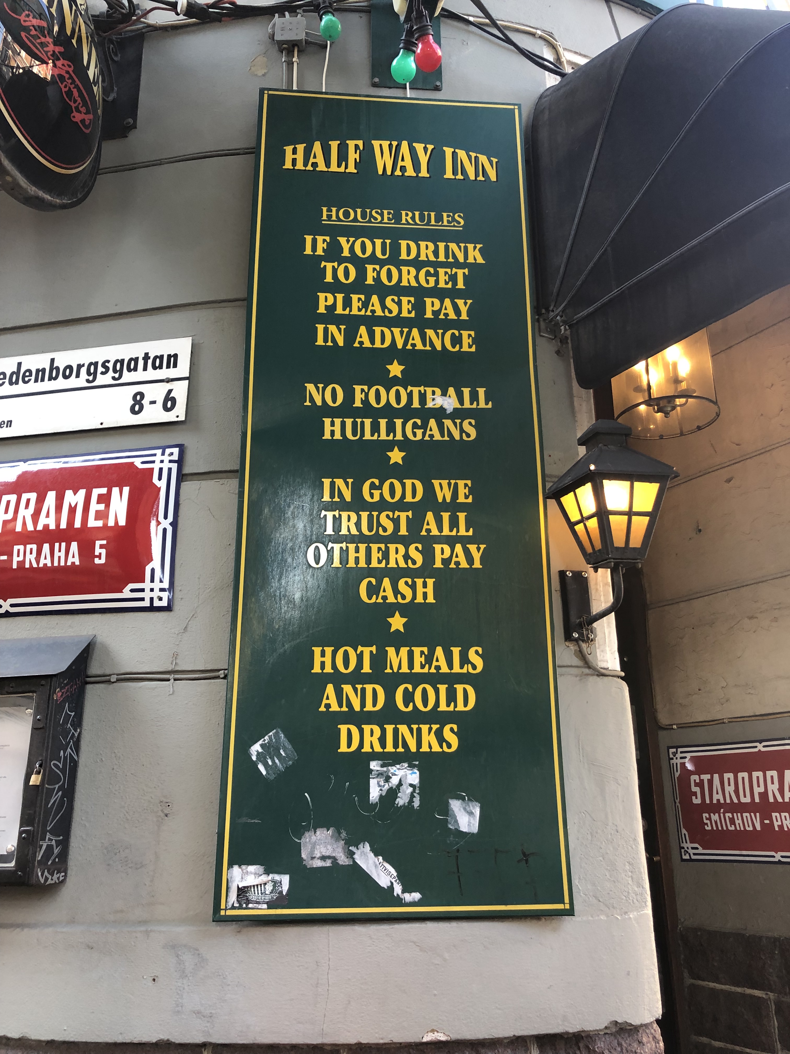 I have to share a couple of funny signs outside a pub we passed in Stockholm near the southern train station we needed to catch our train from…I wonder – is this Swedish or Irish sense of humor???