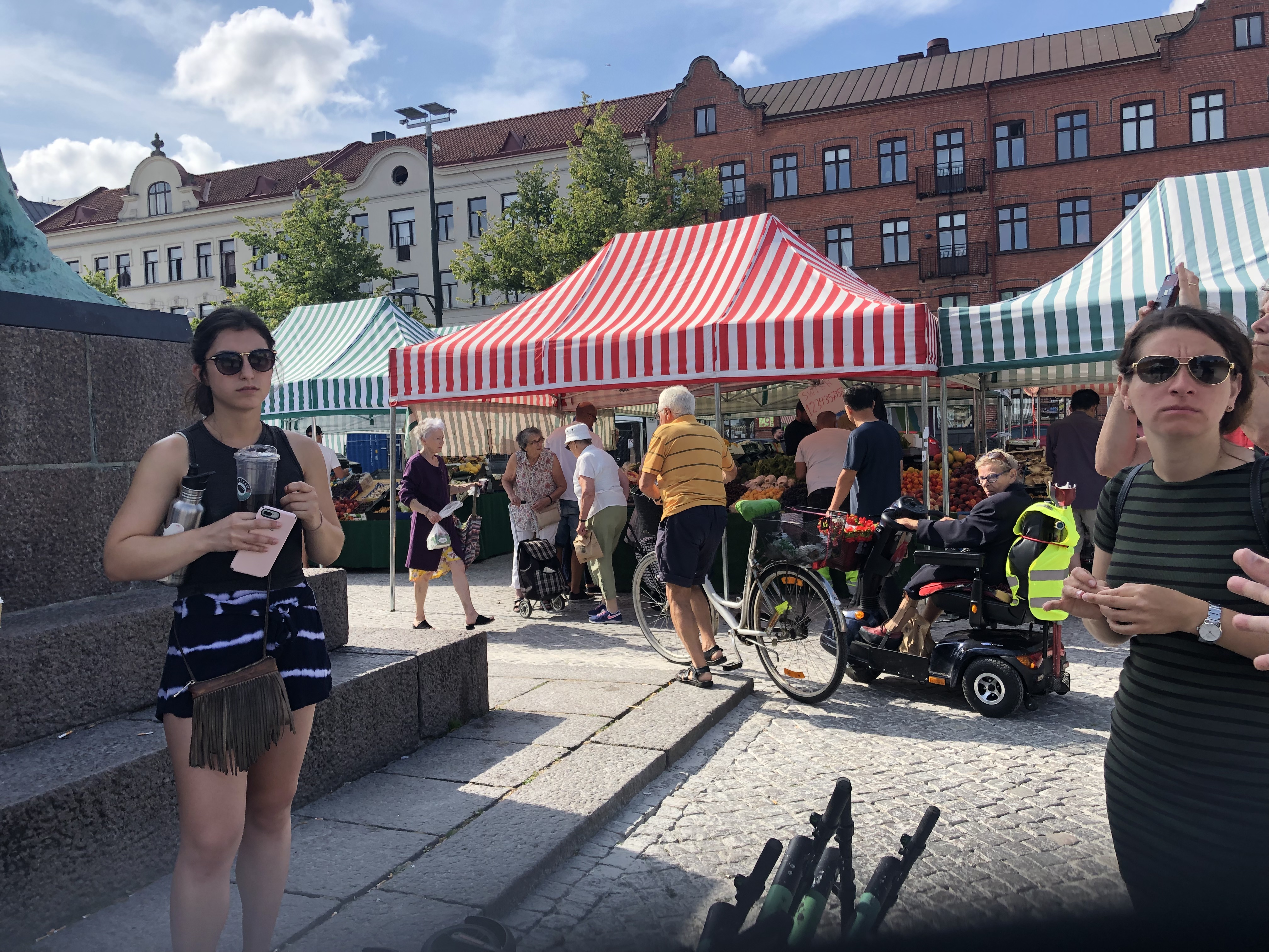 We gathered initially at the central plaza in Malmö, called Möllevångstorget. This very large square has always been the center of a working class neighborhood and the square has a long, and exciting history that includes political meetings, riots and demonstration marches. Now during the day it is a lively farmer’s market and at night it apparently turns into a meeting place with more pubs than anywhere else in Malmö.