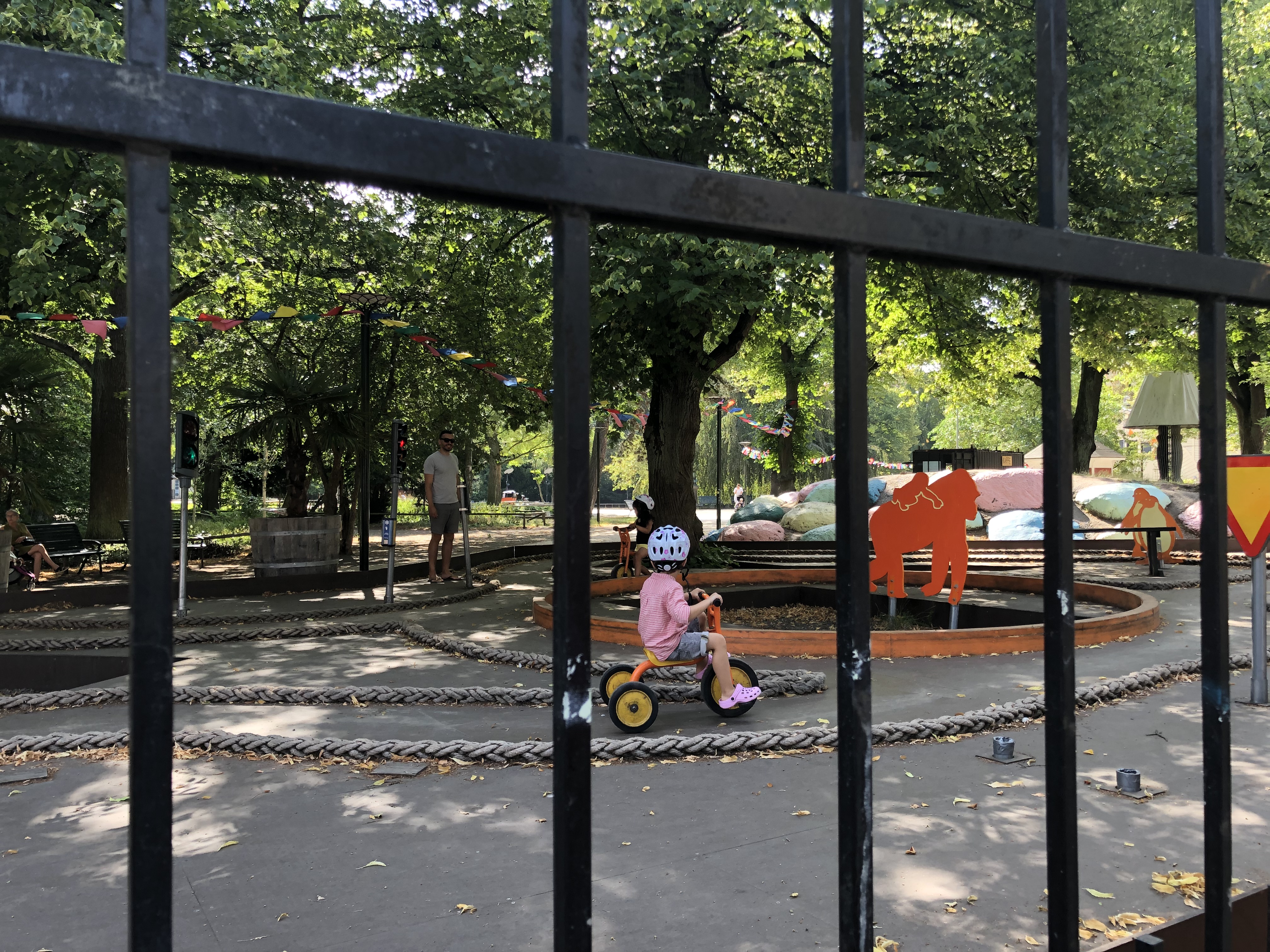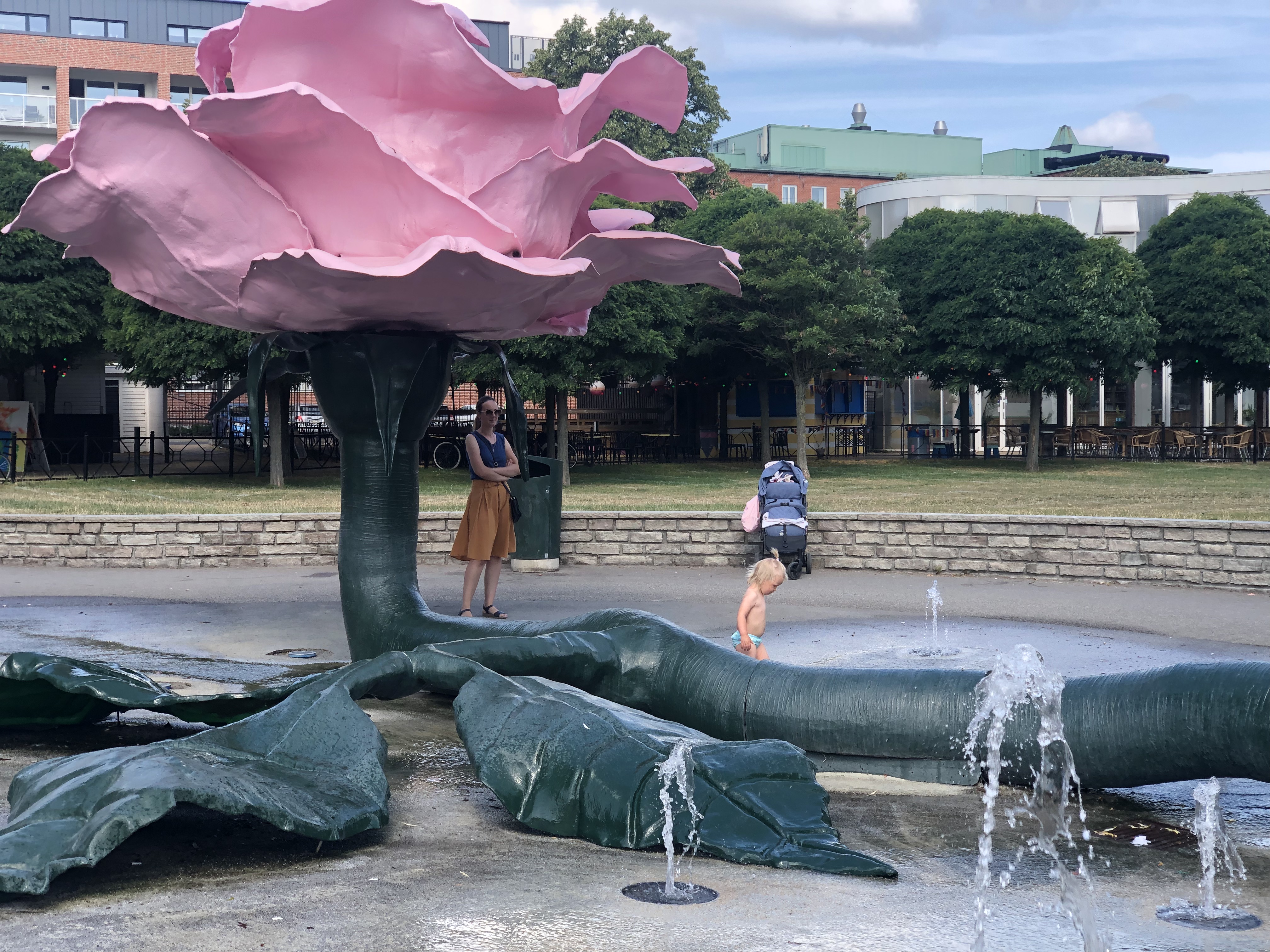 We walked through Folkets Park – the “peoples park” – which is the home to a miniature golf course that sports downsized versions of key Malmö sites; a practice driving course for wee folks (called Cykel Safari) that provides them with rudimentary practice of the “rules of the road”; a mosque-looking building built by a Jewish architect that is actually a concert venue or club of some sort; statues in tribute to key Swedish socialist leaders and poets of the past; and the biggest flower sculpture/fountain I have ever seen! Quite a variety of visuals to take in.