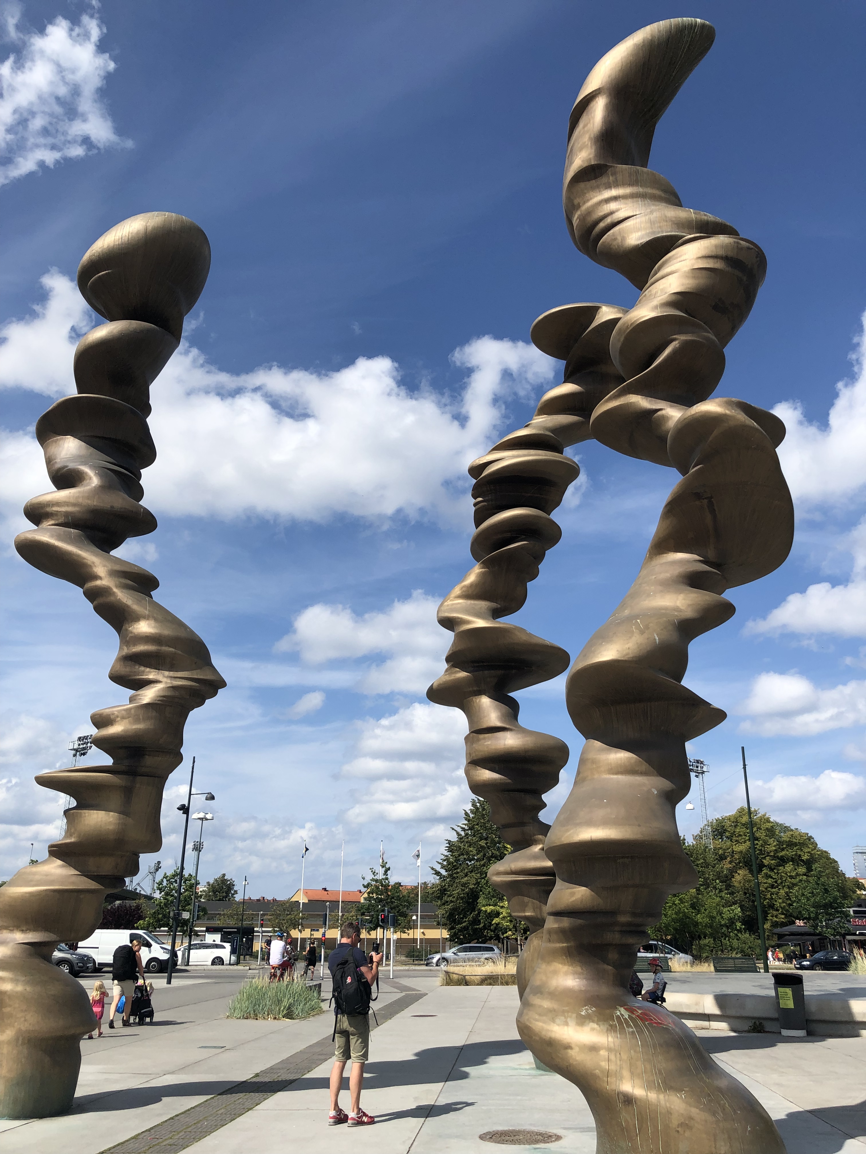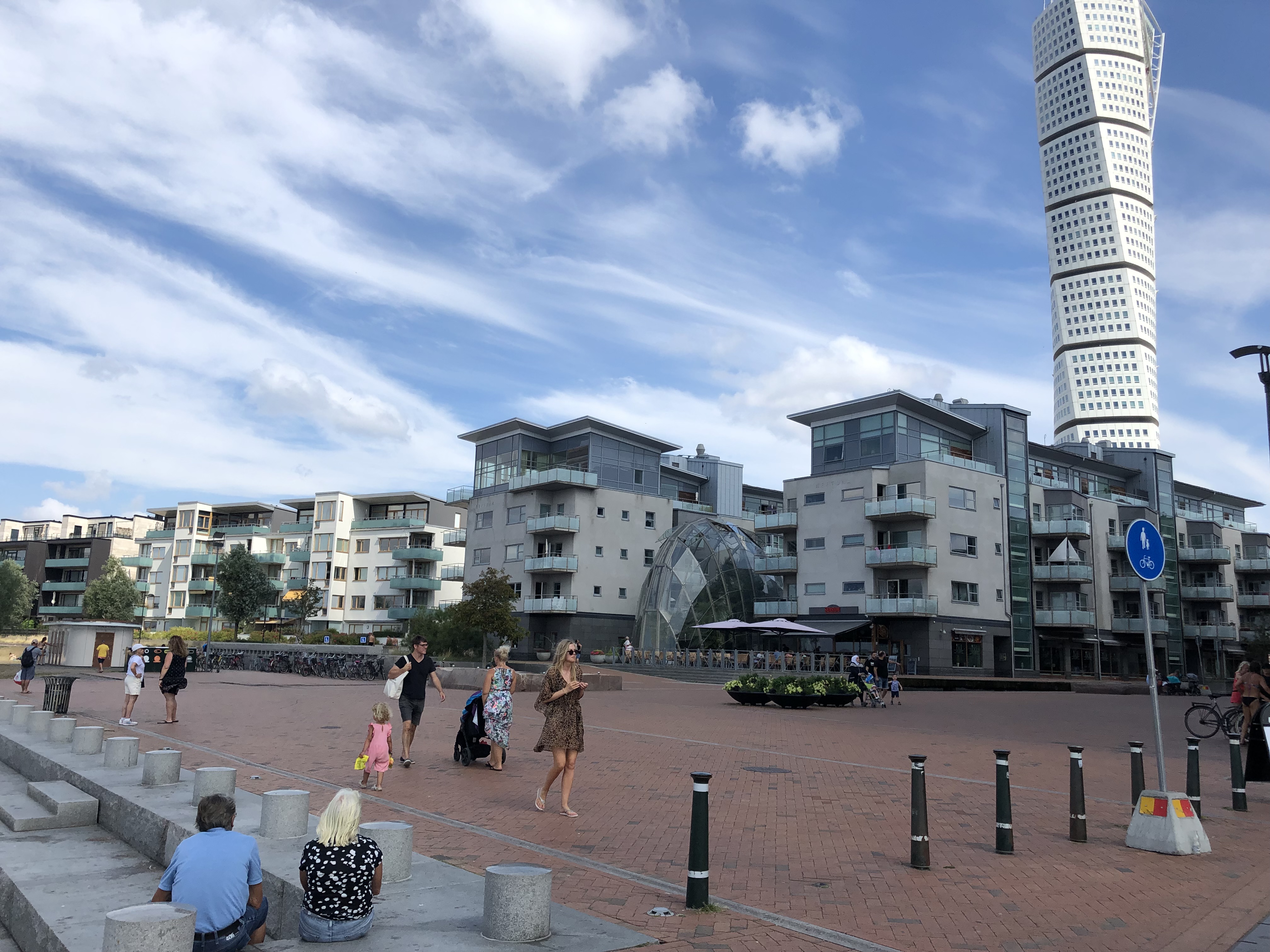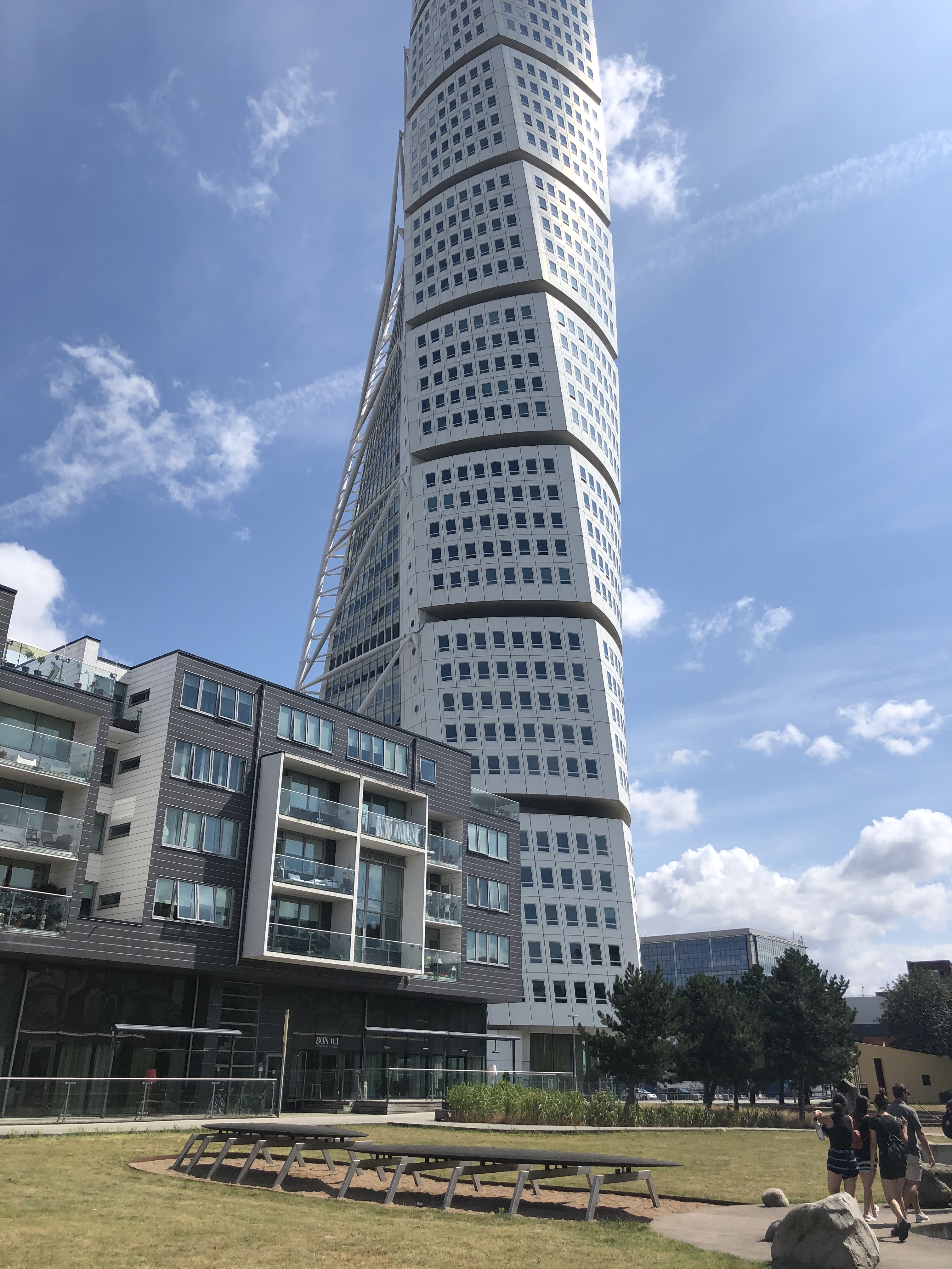 We wandered through most sections of the the city and came across a wide variety of architecture. Some are well-preserved buildings dating back centuries – many have been renovated and converted into different use than the original – a chocolate factory converted into an office building and chocolate museum, for example. Then there are some incredible modern structures – the most notable being the Turning Torso – a neo-futurist residential skyscraper and the tallest building in Scandinavia. We passed through beautiful botanical gardens, admired a windmill that operates annually at a local festival, and walked by a rather imposing metal sculpture that somehow just sprang up in front of a museum – no real explanatory plaque…just put there and…who knows.