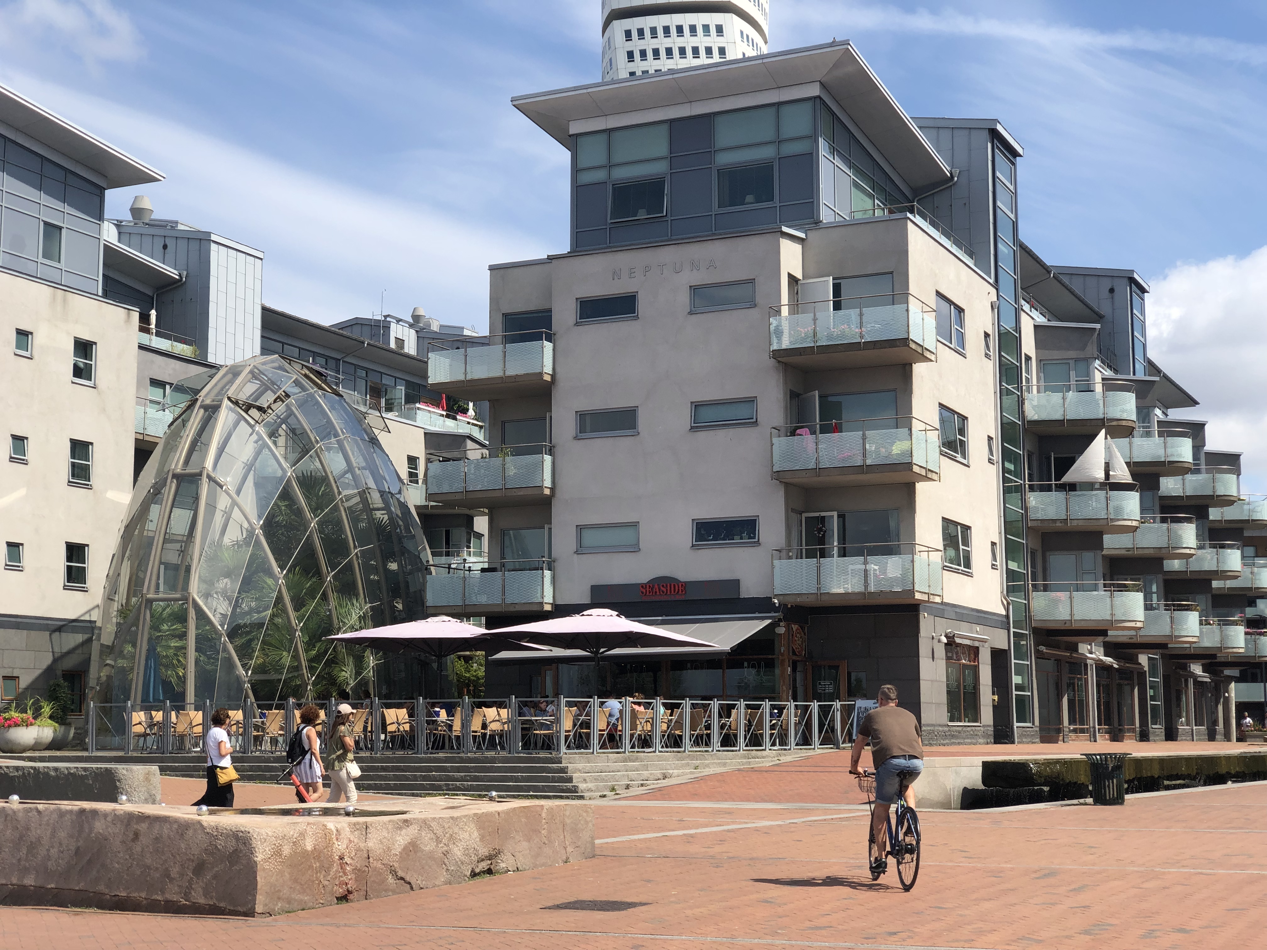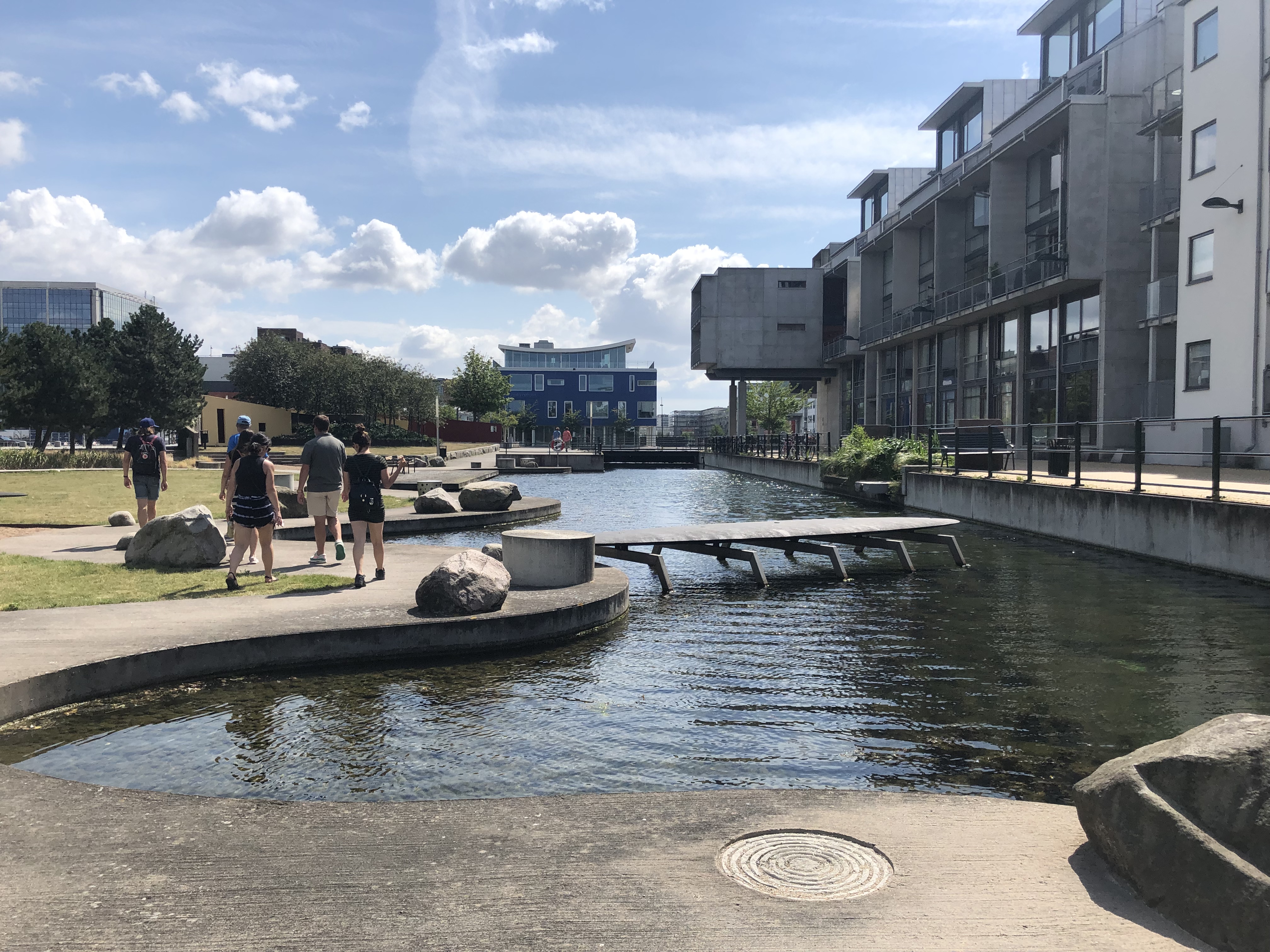 The most fascinating part of our tour for me was a community built up right on the waterfront that is totally carbon neutral! Super modern apartments/condos with gardens and solar paneling on top, a senior residency with its own greenhouse, an incredible wooden boardwalk designed for sunning and swimming, and a canal-side set of smaller apartments with gardens and rock sculpture water features nestled throughout. I could live there…