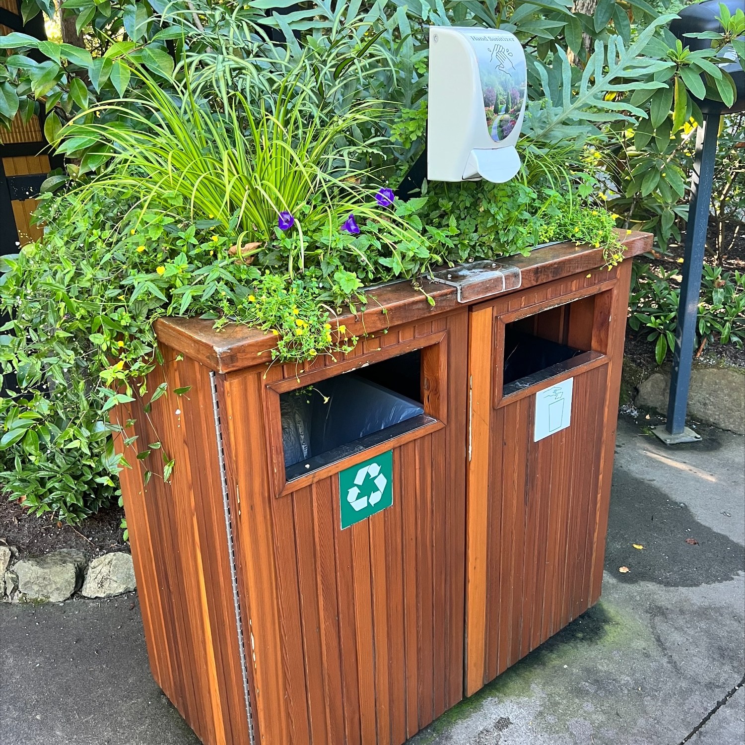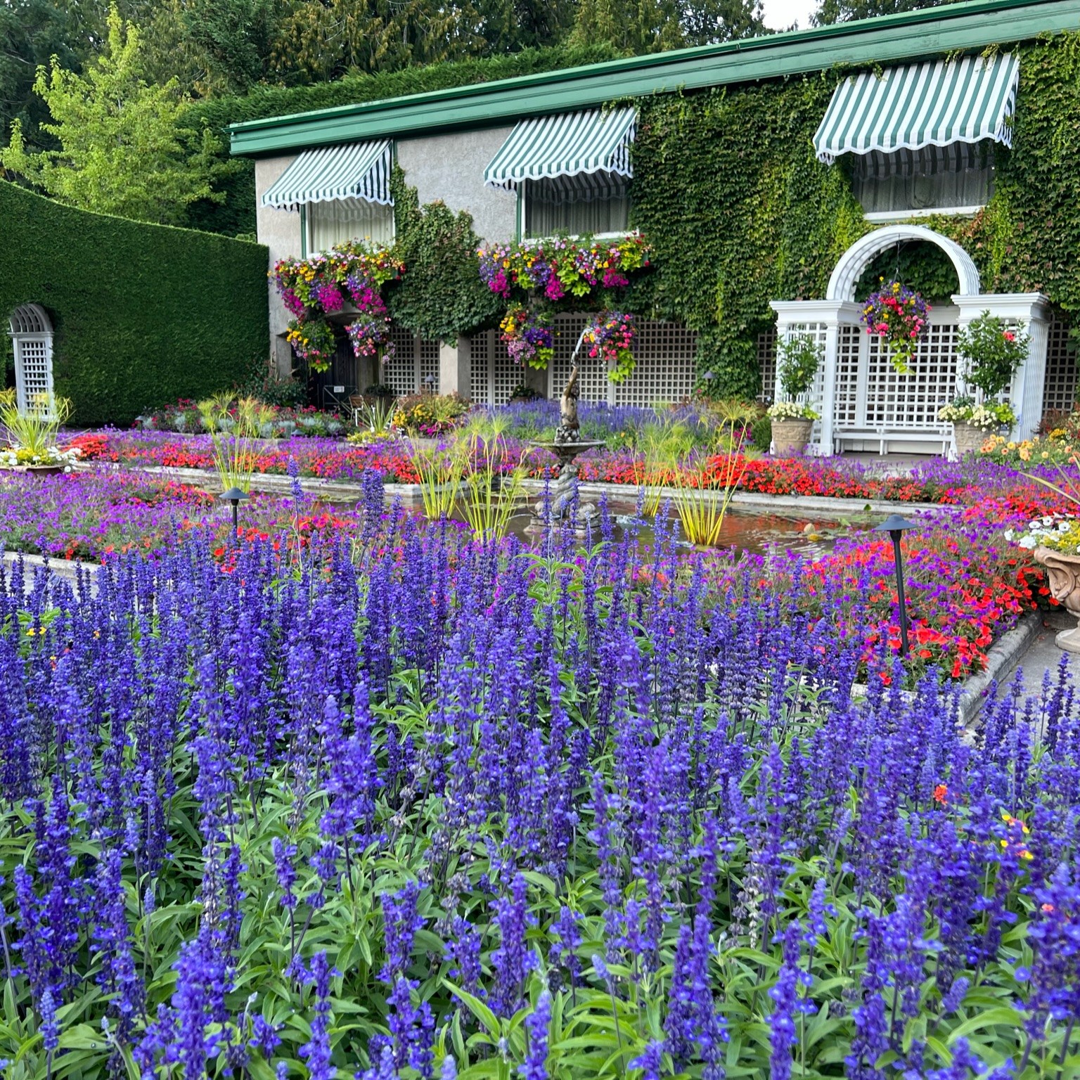 Butchart Gardens: If you have never been here, there is no way to accurately describe the incredible scope and beauty of this expansive and tenderly manicured garden paradise. We were told that up to 70 gardeners are needed to maintain this wonderland of species, textures, cultures, and visual overload of color. We took 3 – 4 hours wandering through this paradise of sites and smells (oh, the roses!) and it felt like we could have spent even more time if we had the energy. What really hit me as I walked around was how much the impact of each of the stylized gardens depended on the design creativity that blended color, texture, height, and growth pattern to literally “paint” canvases of flowers, shrubs, trees, grasses, and statuary (in some cases) in such variety. A true melding of heavenly and human artistry. Even the trash receptacles were gorgeous!