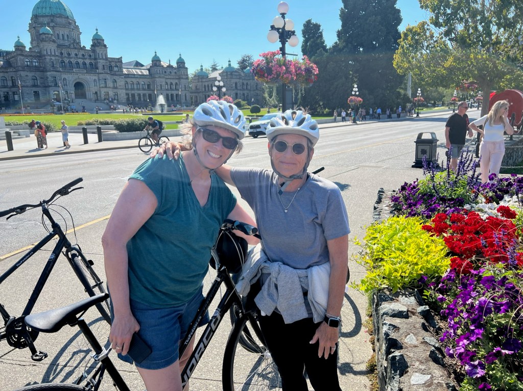 We were lucky to be able to set up a second home exchange right after our stay in Banff – in Victoria, BC. Andrew and I hadn’t been to Victoria since Ari was a tiny baby and other than the Empress Hotel I had little recollection of the city. It has no doubt grown over the past decades, and we were thrilled that our friends, Kathy Kline and Louis Holtzman, were able to drive up from Seattle and rediscover it with us. The home we stayed in was perfect for us…in a quiet residential neighborhood, walking distance from the beach and to some of the enclaves with restaurants and coffee shops, and biking or short driving distance to some of the main attractions. We really love doing home exchanges because we not only get to know local people (if only via email, Zoom, and text), and have the comforts of being able to cook, do laundry, and have quiet downtime without the hubbub (and cost) of being in a hotel. And most of all, we get to do all the fun stuff with friends and family we love so dearly!