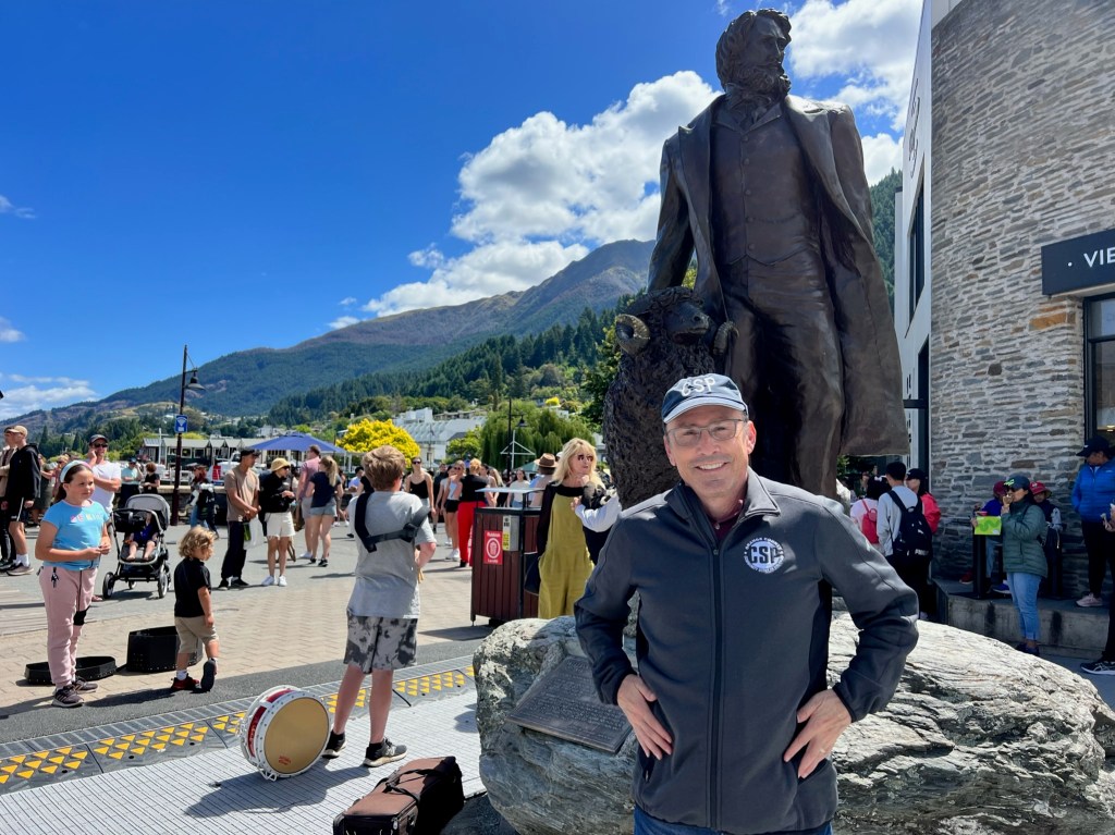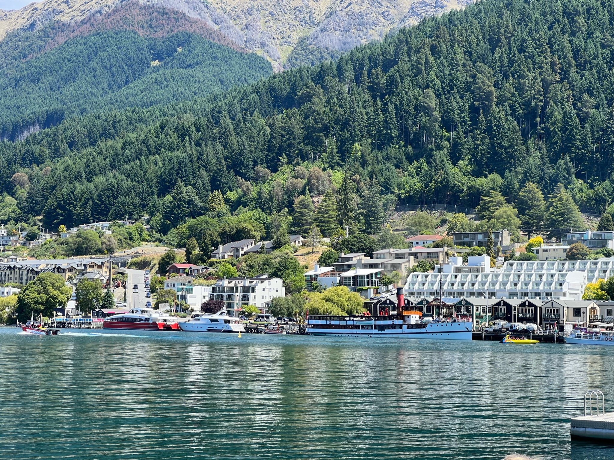 The house we are staying in is just outside Queenstown proper in a fast-growing development called Jack’s Point (https://www.jackspoint.com/). It backs up to the Remarkables mountain range with a public greenbelt running past the row of houses we adjoin. It’s a short walk to the shores of Lake Wakatipu that winds around to Queenstown itself. We are thrilled to have my brother, Noah, and his wife, Dalia with us, along with our dear friend, Kathy, from Seattle traveling with us! The three of them have never been to New Zealand so it’s fun to see their “first time” wonder. We have a resident cat, Lotus, who choses her bedmate each night with a growing preference for my brother!