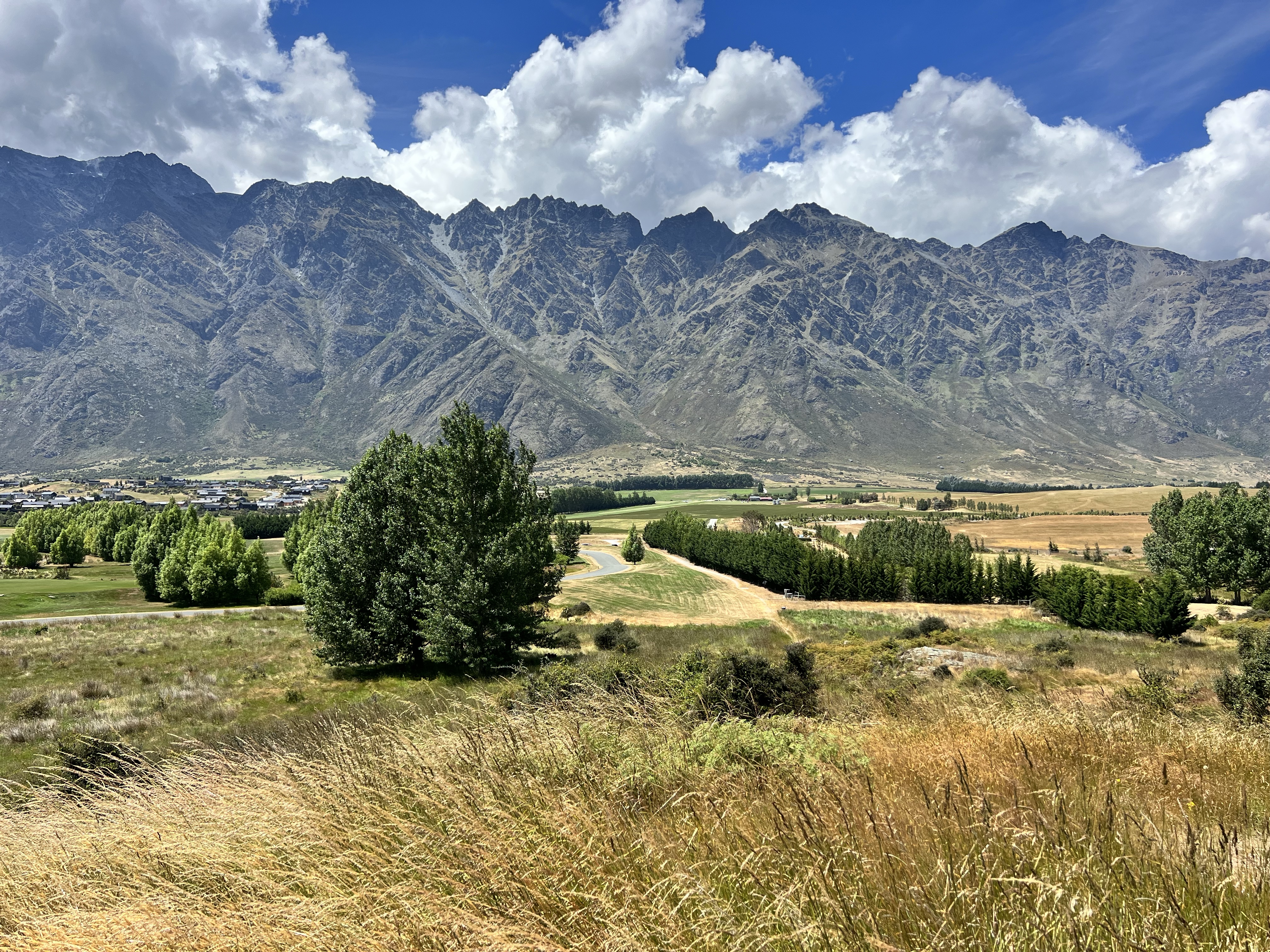 We hiked down to the Jack’s Point clubhouse that includes a golf course, sports shop, and a lovely café that overlooks a small lake. We’d been there a couple of days ago and since it was basically on the route back home (and we were hungry) we stopped in for lunch there. It never ceases to amaze me how it is impossible to get a mediocre meal in New Zealand (at least we never have) – whether at a roadside takeout or a sit-down. There is a solid health-consciousness that focuses on organic, locally grown produce, meats and fish, dairy. It’s not always inexpensive but always fresh.