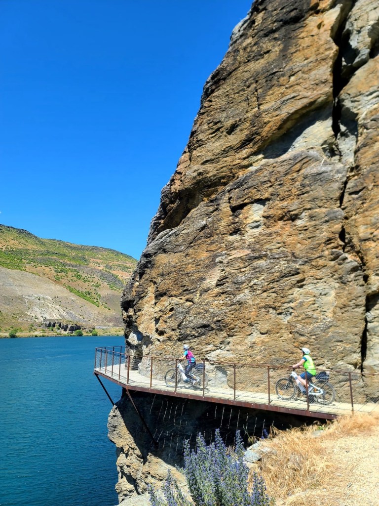 …riding part of a spectacular gorge on a track that literally hugs the sheer cliffs that form the ravine of water. Kathy chose to ride the entire way while Andrew and I were happy to ride the first bit and circle back. Kudos to Kathy for her bravery.