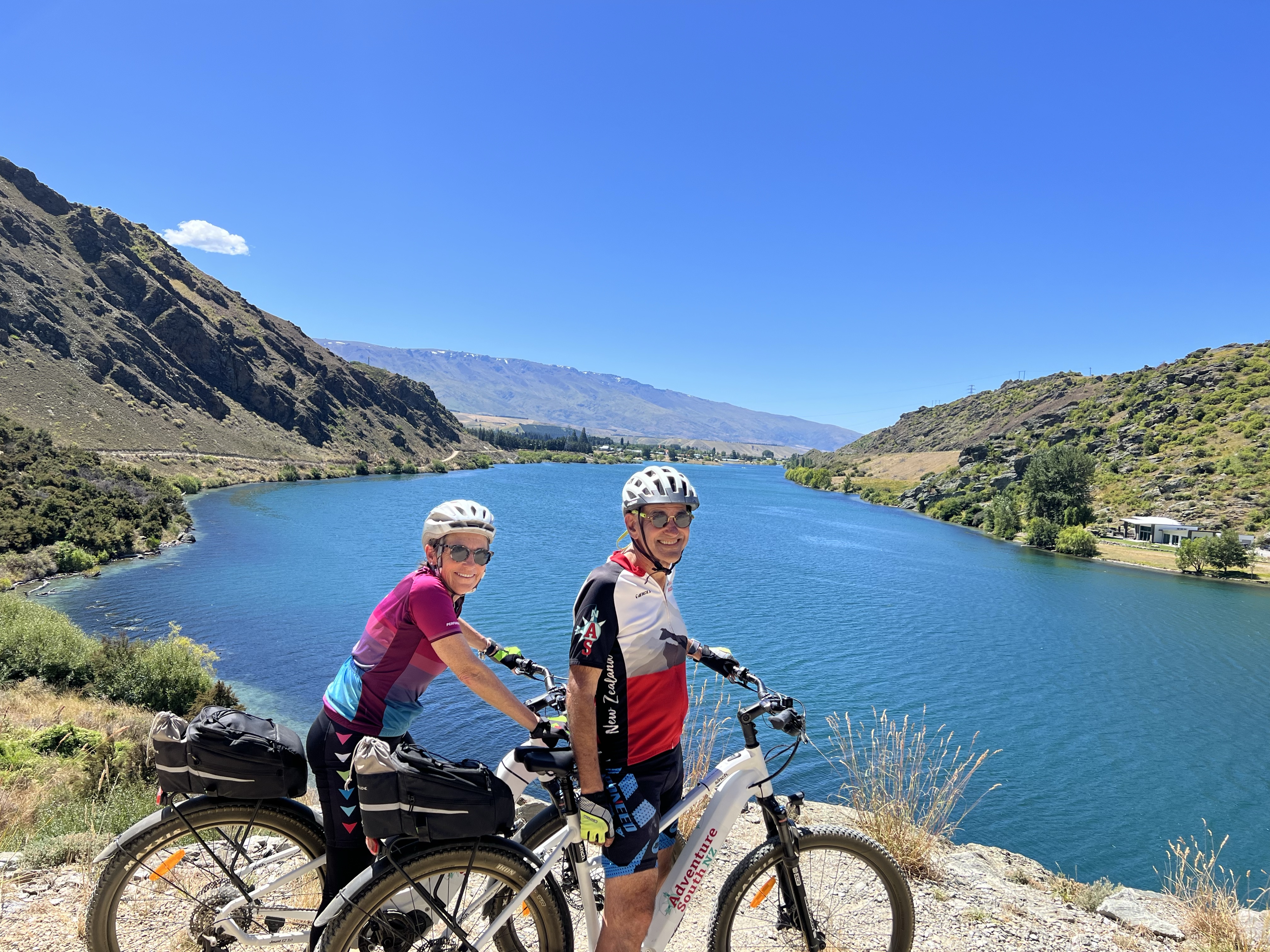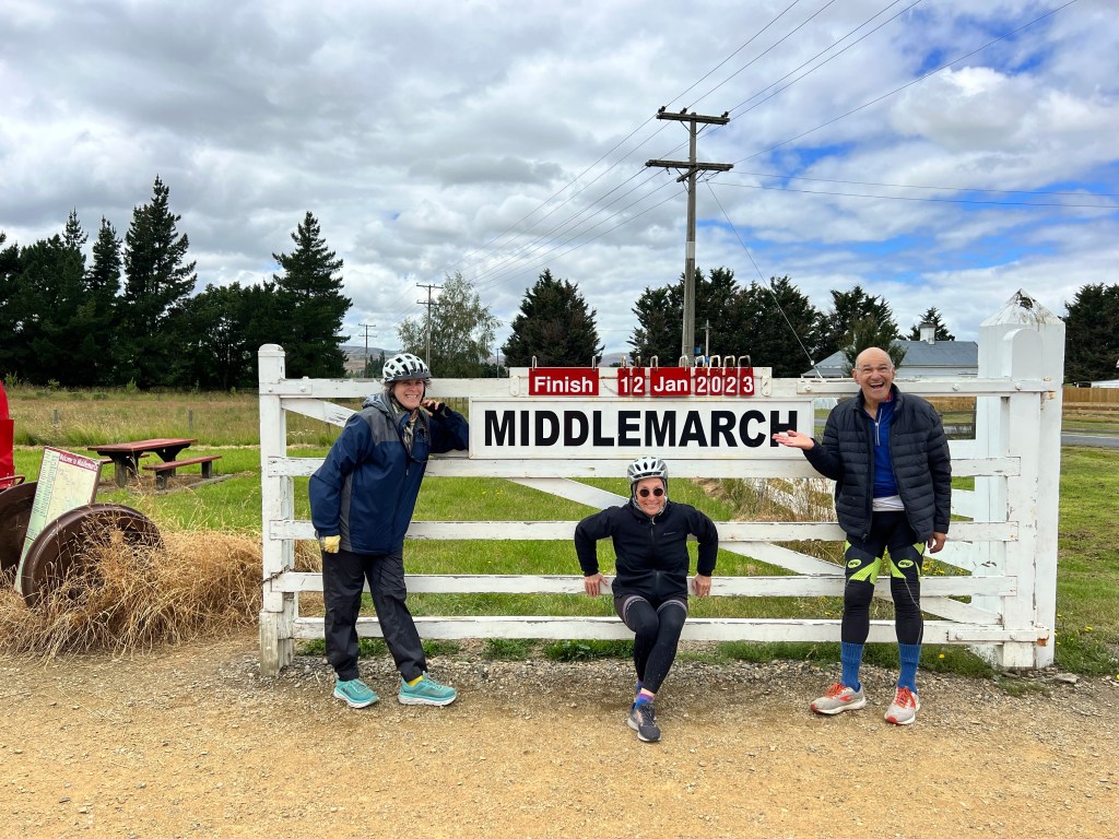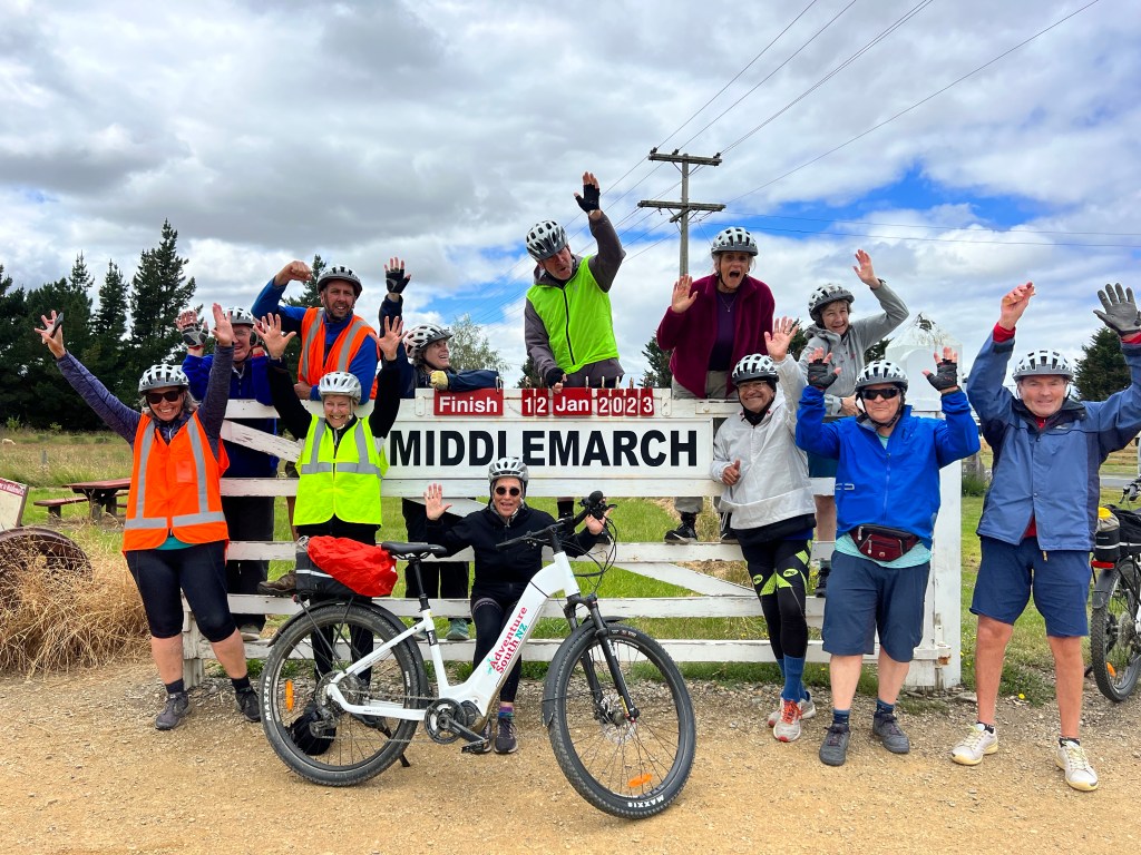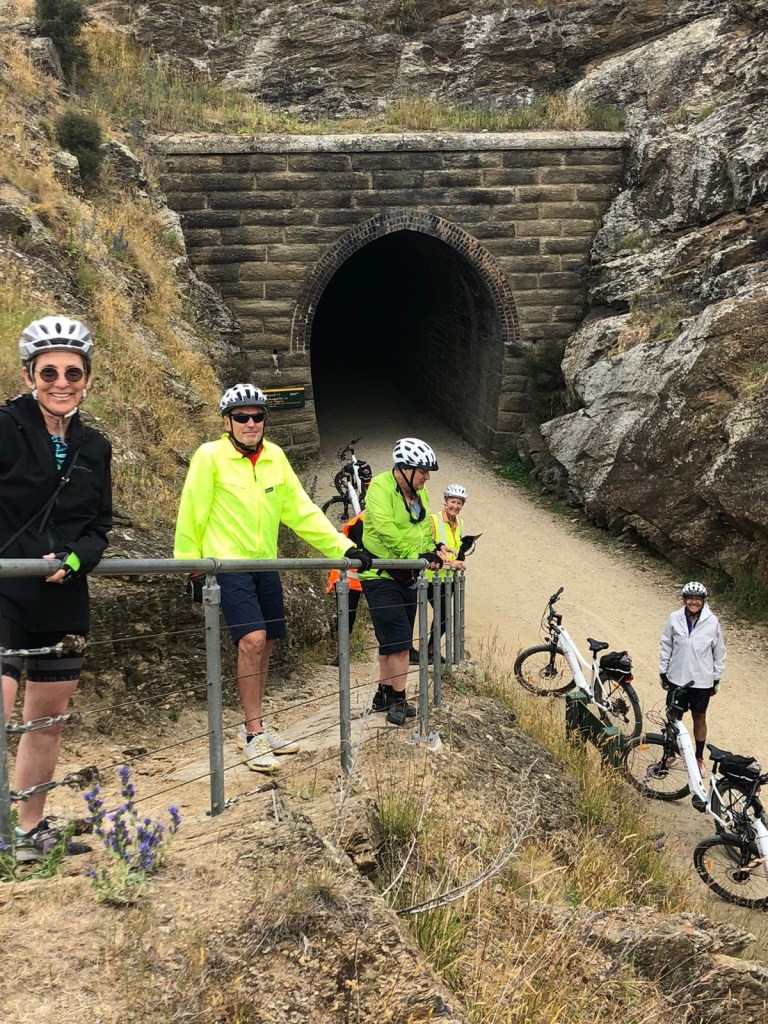 Noah and Dalia headed off to explore the North Island and we were very excited for them. Many of our fondest memories of our time in NZ in 2019 were at some of the places they planned to travel to, so we are glad they could do a similar exploration and we hope to hear about their experiences when we reunite in the States. Andrew, Kathy and I – based on our great journey a few years ago – decided to do a biking trip with the same company we used last time, Adventure South NZ. On that trip we biked a very different section of the south island – on standard road bikes. We had some regrets back then as the terrain was quite hilly in sections and riding gravel is a learned skill. Nonetheless we enjoyed that trip so much we came back for more…this time, it was 4.5 days on ebikes, riding a total of 150 km (just under 100 miles). This was the Otago Central Rail Trail – an old train bed for produce and livestock transport now converted into a biking and hiking track.