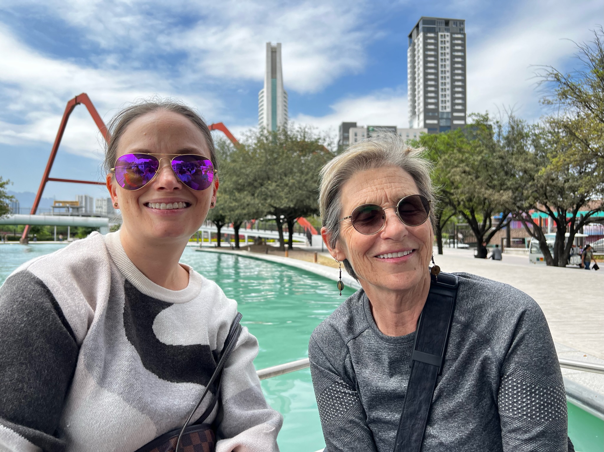 We spent just one evening in town and Marichu toured us around – in particular getting to ride the canal boat that connects the main public park (Parque Fundidora) with the city’s central district. The park once belonged to an iron and steel melting company and is now a cultural center containing museums, concert halls and an amusement park. The canal and boat ride known as the St. Lucia Riverwalk (Paseo Santa Lucía) is reminiscent of the same type of experience on San Antonio’s popular riverwalk across the border in Texas. The pedestrian walkway, which runs along an artificial river, connects the downtown “Macroplaza” with the park, with shops and restaurants dotting the way.