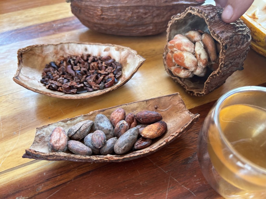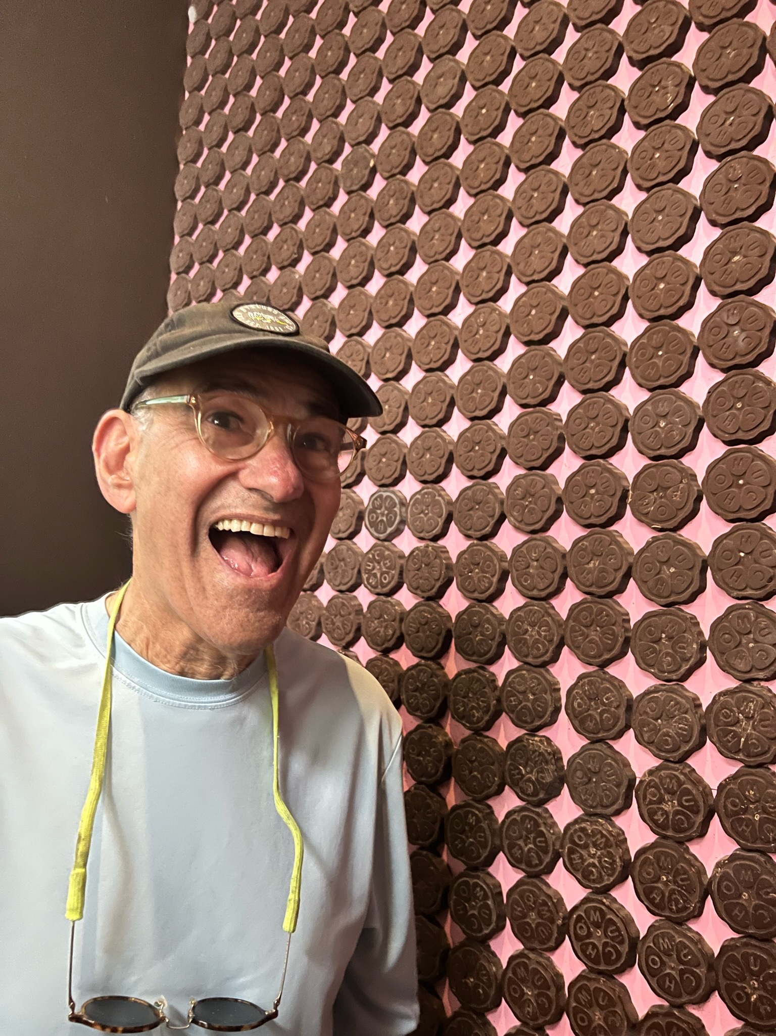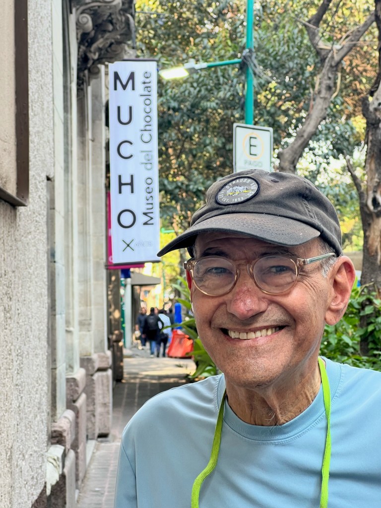 One other highlight of our time in the big city was a visit to the Chocolate Museum. Being married to a confirmed chocoholic, there was no way this could have been avoided! This small museum’s exhibits and docents explained the entire history of growing cacao (the key ingredient in what we lust after as chocolate), harvesting it, roasting and grinding it, and adding the various sweetening ingredients to produce the wide variety of end-products prized throughout history. It was a risky proposition letting Andrew stand in a room that was wall-to-wall chocolate but we did come out the other side and ended up with tasty treats from the onsite bakery.