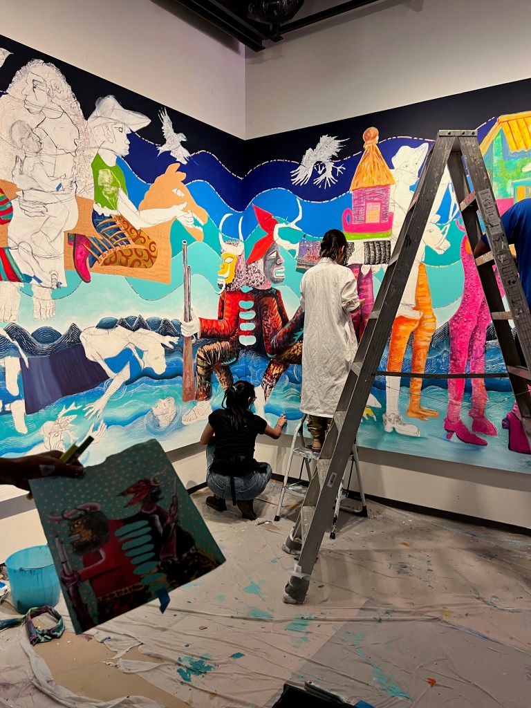 When we were wandering through the converted school, we stumbled on a group of young muralists working under the guidance of a professional artist. The collaborative mural they were working on depicted many of the historic as well as current day societal issues that are being faced in Mexico. This deeply touched me. Part of the work-in-progress put a spotlight on the horrors of an immigration system that is failing from every standpoint…and these young people are facing this and many other cross-cultural challenges.