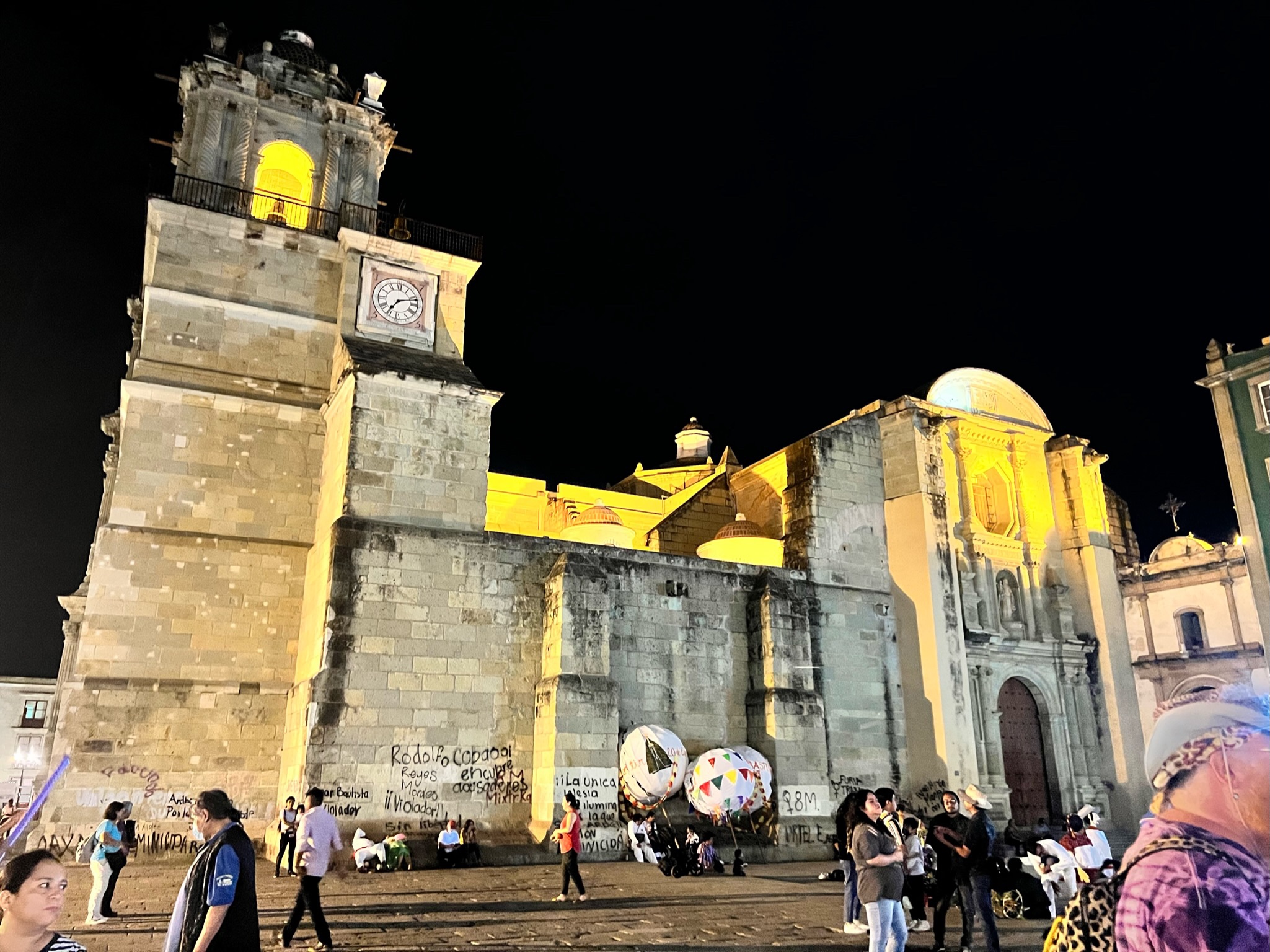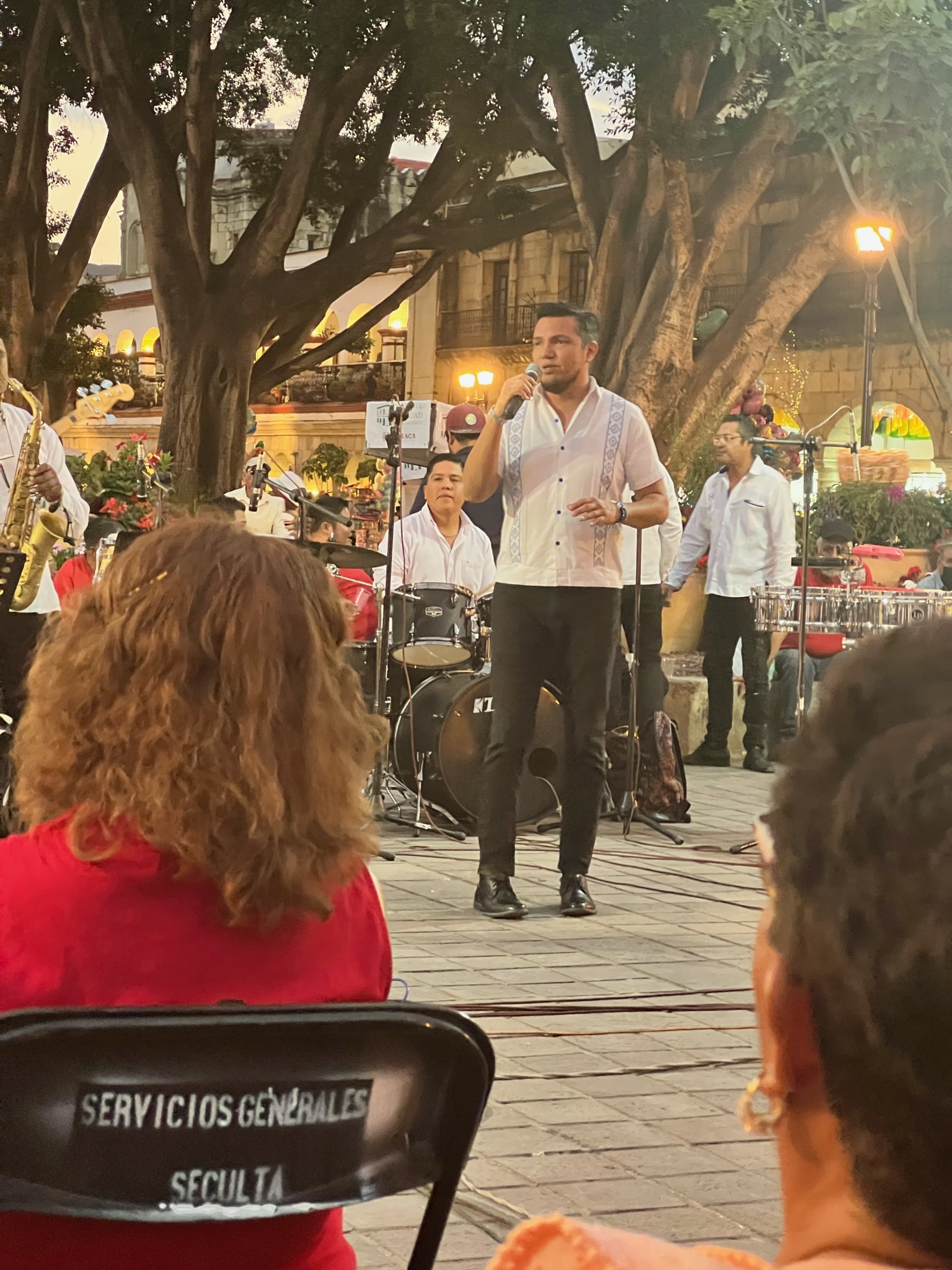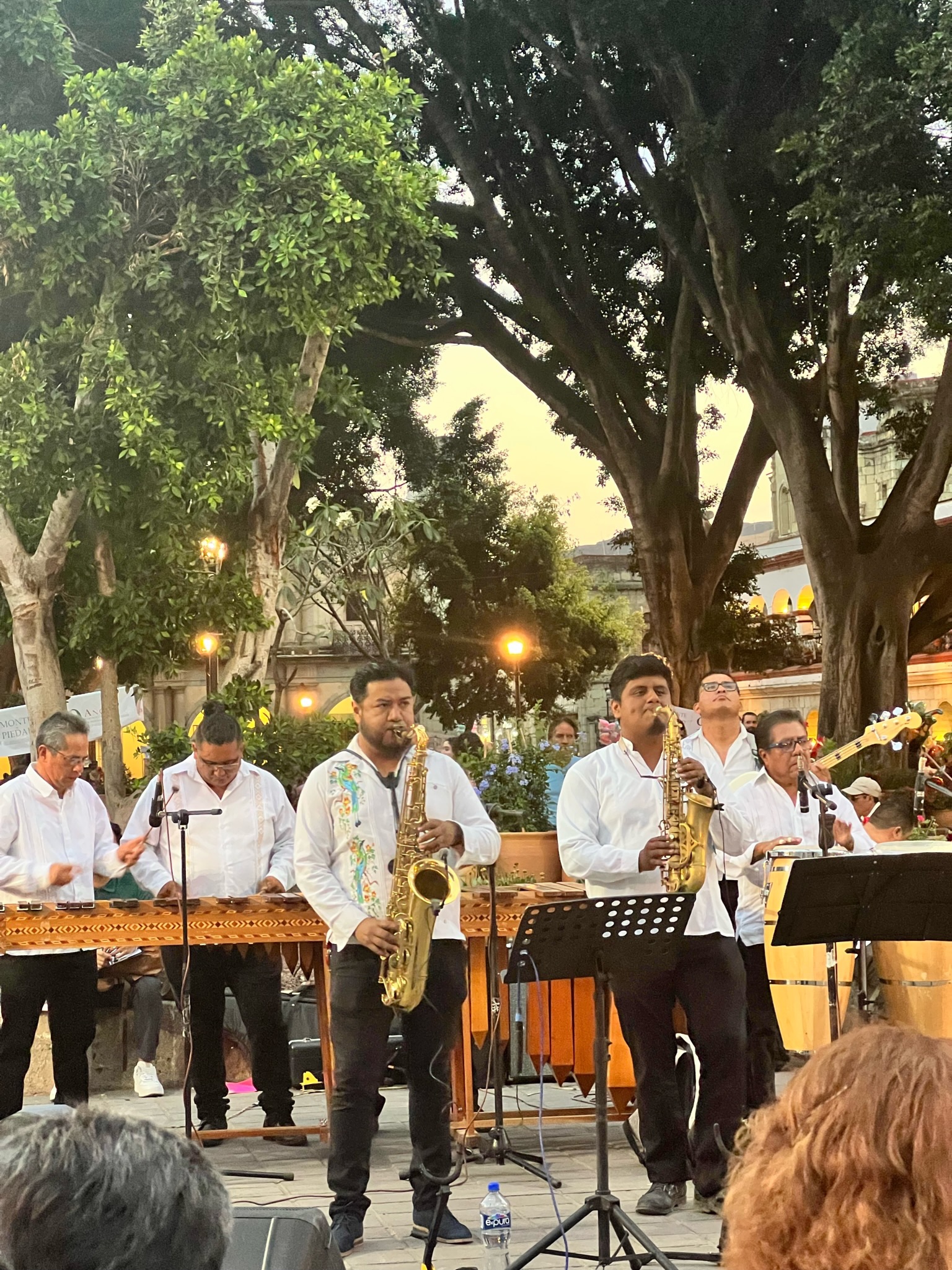 One real highlight in Oaxaca was our nightly stroll through the zocalo (again, the main square). Every night families gather there to hear live music, eat and drink from street vendors or hang at outside cafes, and let the kids blow off steam running around in a safe village-like atmosphere. The first night we were treated to a marimba band and the lead singer did a great rendition of New York, New York in tribute to Frank Sinatra…that was a mindblower.