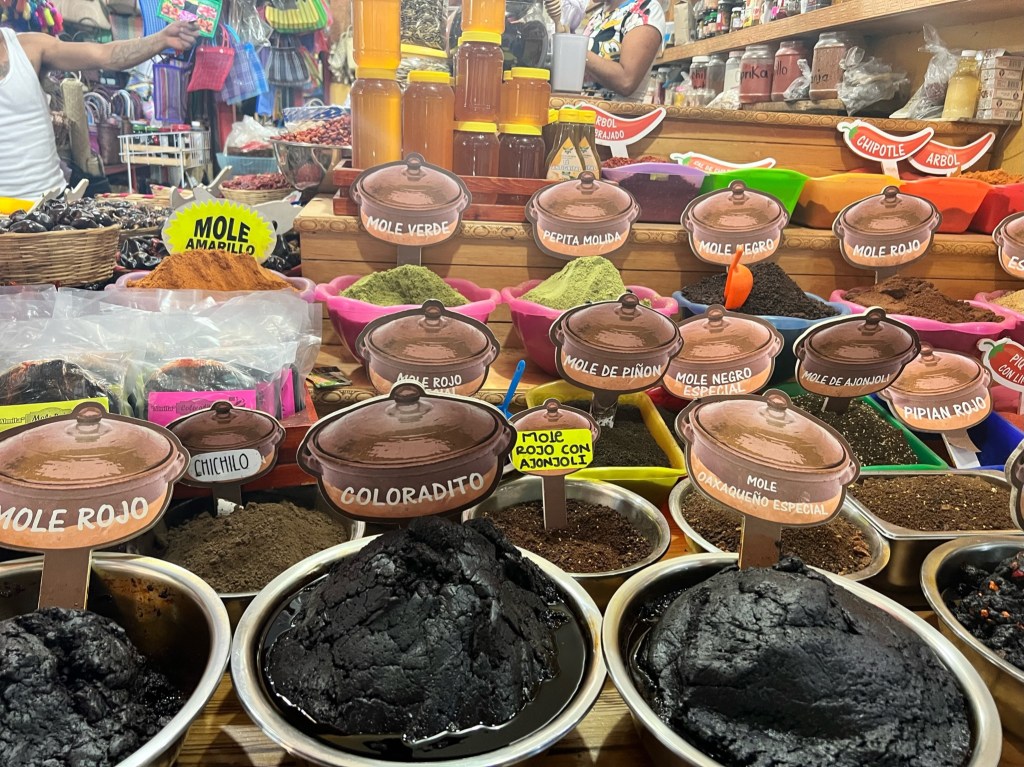 We also did a street food tour in Oaxaca and lucked out with another awesome guide, Luis. The tour was called “Earth, Corn and Fire” and we enjoyed every bite of it! Favorites were five or six different types of mole sauce and the most famous local ice cream found deep in a bowels of one of the daily markets.
