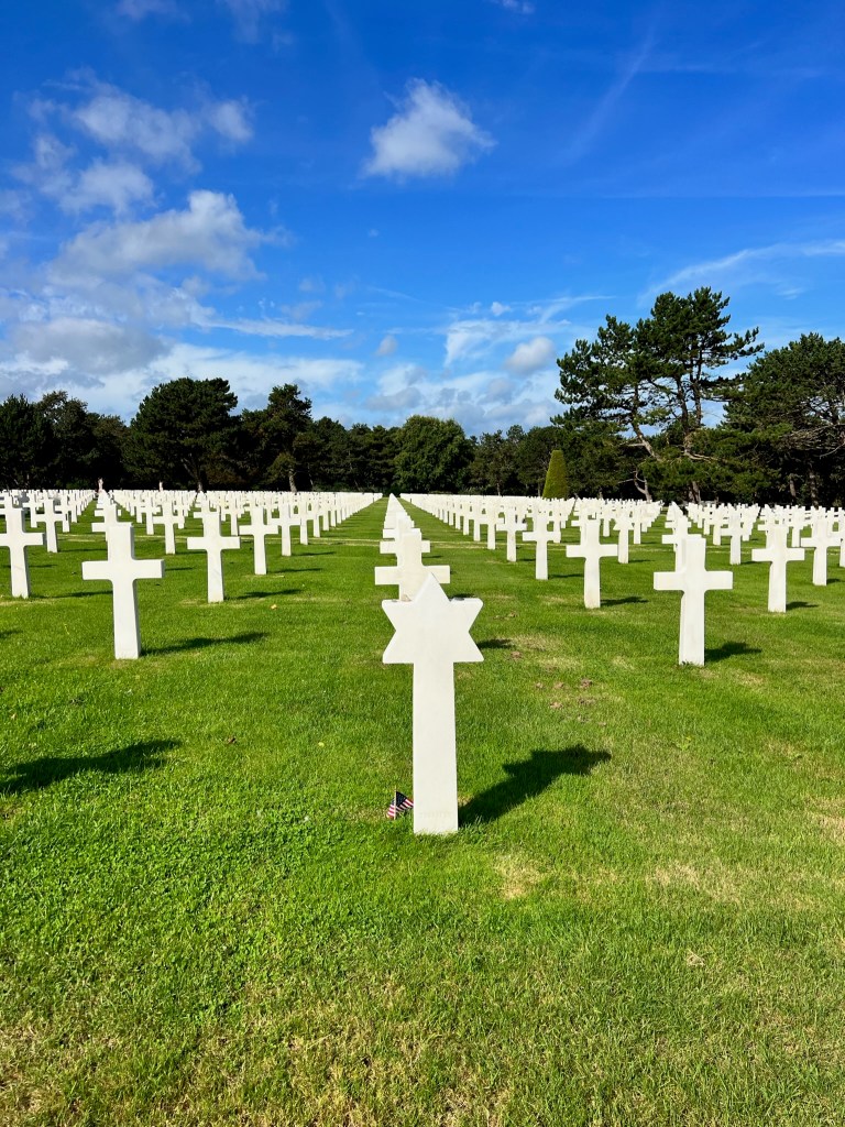 Part of our tour was to the American and British cemeteries housing the soldiers who perished in WWII – and so many were from the battles in Normandy. I was personally touched to see the recognition of Jewish soldiers.