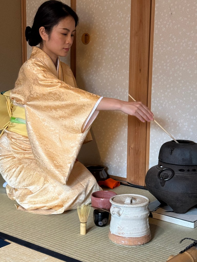 I’d arranged a few different activities for our time in Kyoto, and the Tea Ceremony was a highlight. Held with a small group in a tatami room, we learned the true art of making matcha tea. Every movement and action taken is prescribed and has significance in this ritual – all with the purpose to elegantly serve guests. Since I love matcha tea, I bought a set for preparing it plus some Japanese matcha powder to try at home.