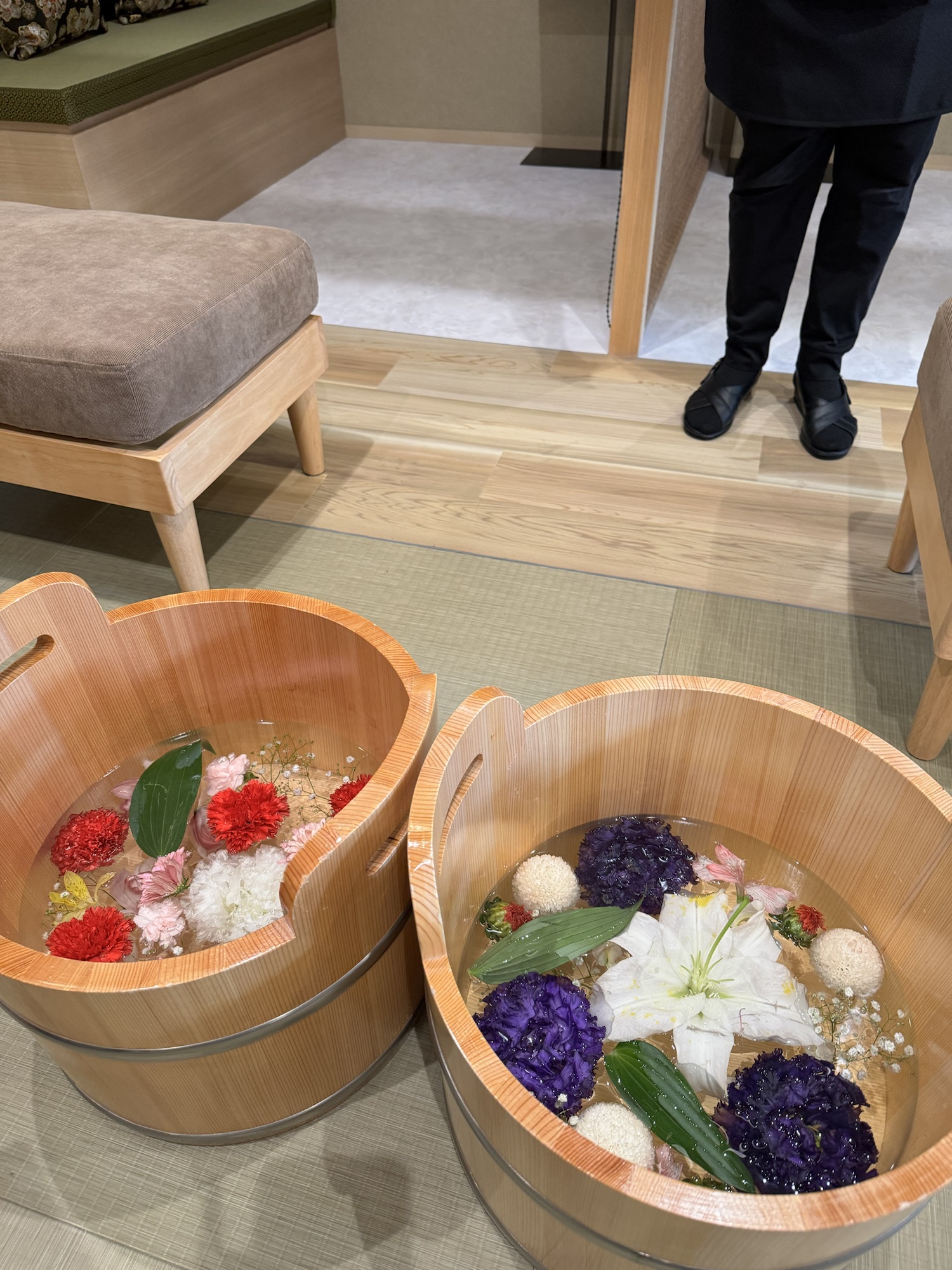 We were very fortunate to have booked into a nearly brand new, small hotel (Gion Elite Terrace) right in the middle of the historic district of Kyoto (the Gion). We loved being walking distance to the vast majority of historic and cultural sites, and the rooms were cozy…we even had an in-room dry sauna, a soaking tub, and a private little garden. The included breakfast buffet included both Western choices and some typical Japanese favorites, and there were abundant samples of Japanese skin care products that ended up converting me to one of the brands!