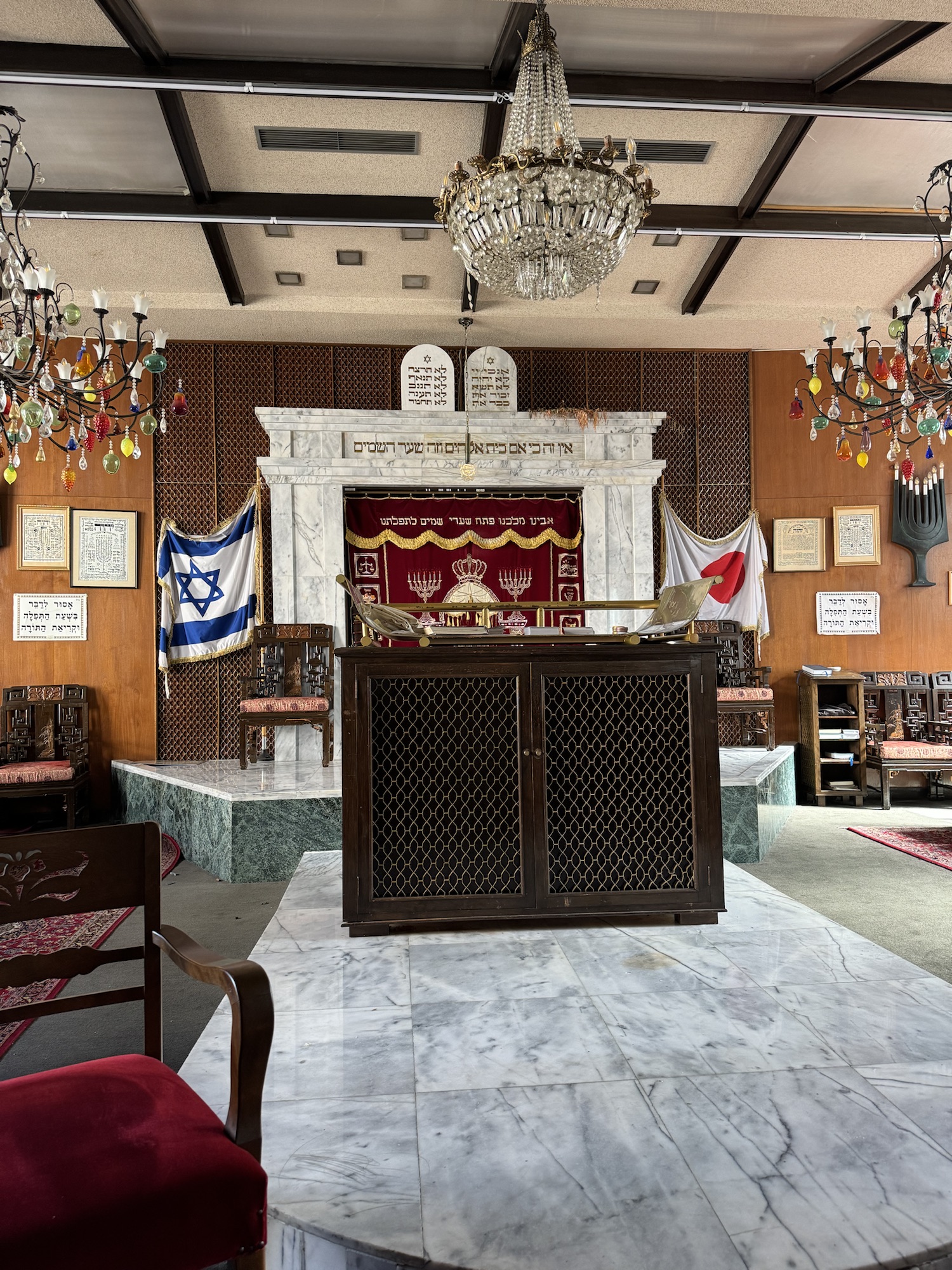 The Rabbi greeted us when we arrived a couple of hours before the evening services and spent nearly an hour talking with us about his background, the community, and asking us about our travels. Just before services started, a large group of Jewish tourists arrived who were traveling from New York through Japan. We were sadly struck by how unfriendly they were in general – keeping to themselves, talking through the religious service, and more that was disappointing to us. We were told by one of the community members that they just showed up to be assured of a kosher meal – hard to find in Japan, for sure. Conversely, the Kobe community members we spoke to were very warm, inquisitive, and made us feel very much at home. We sat next to a lovely doctor from the UK who had joined Chabad recently. He trains Japanese physicians – he held a very discouraging view of young doctors in training there…he said much work needed to be done to instill better “bedside manners” and technical skills. We are super glad we didn’t have any medical needs while there, and of course he had a small view of a much larger network of professionals in the country.