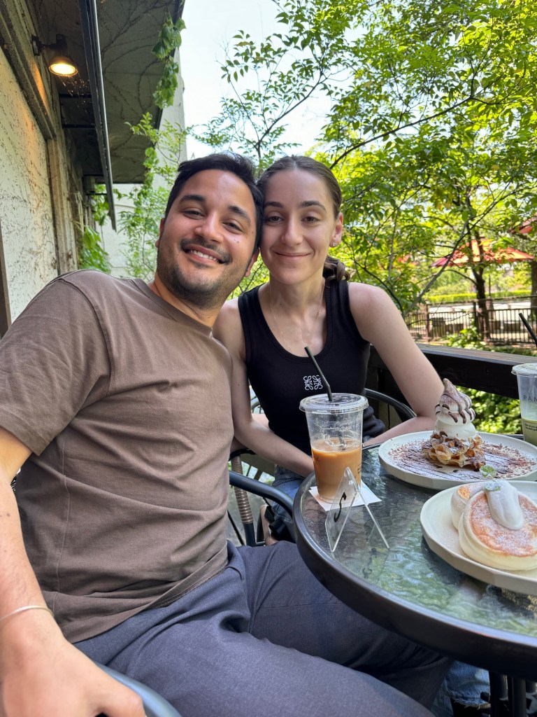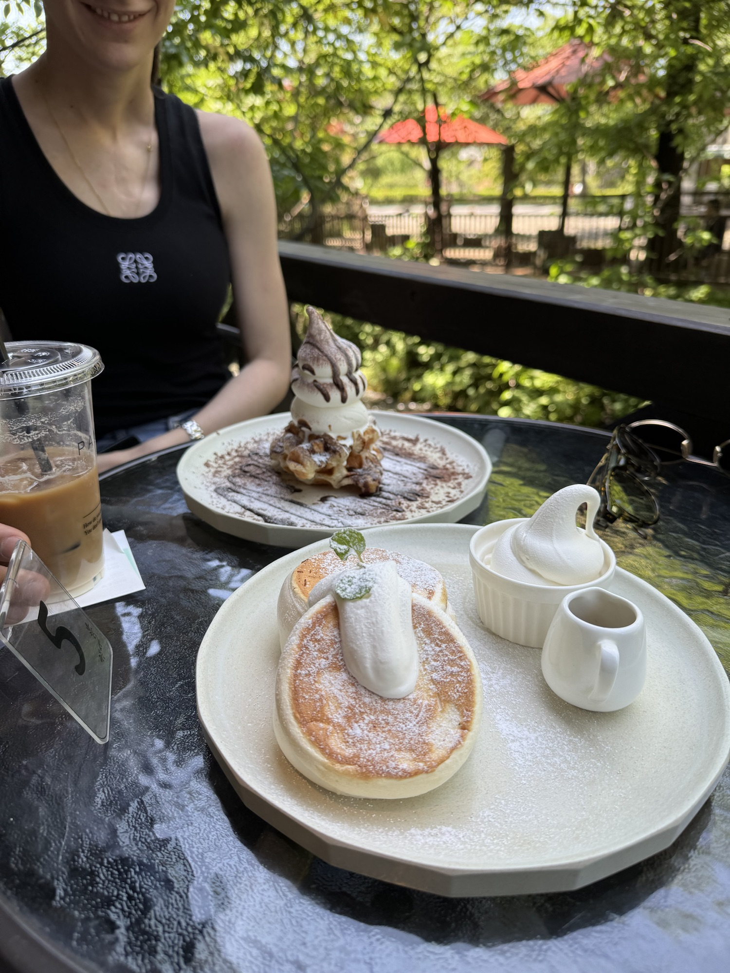 Through the double-edged sword of social media (!!) we lined up the next morning in Kyoto for “famous” fluffy pancakes. We’d read that these were an absolute do-not-miss so like lemmings on a cliff we followed the hungry noses to wait about 30 minutes to order and get seated. While in line we started a chat with a lovely young couple from Paris – there for the same reason. He is a doctor, she a finance officer…and what were the chances? They are Jewish too. We hit it off and ended up having our definitely scrumptious pancakes together at a table overlooking the river that runs through the city.