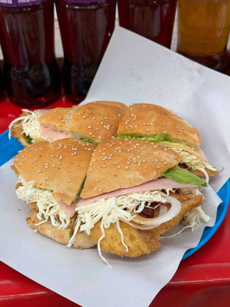 In Oaxaca, in Mexico City, and in Tokyo as well, we’d really enjoyed doing culinary tours that gave us a taste of local “street” food and everyday life – so we decided to do this again in Puebla. Our guide, Ronnie, was terrific! We wandered through the main public market to check out the incredible variety of fruits, vegetables, and massive types of meat and fish. Along the way we sampled the local enchiladas with various mole sauces, and cemitas – a Puebloan-style sandwich with fried meat, avocado, queso, chipotles, and papalo. Papalo is an herb that reminds me of a mixture of nasturtium flowers, lime, and cilantro. Soooo yummm! We also got to sample other local delicacies – sweets included – as Ronnie took us to his favorite coffee shop, breakfast stop and candy store. We have found that these half-day “introductions” to the food side of a city always leads to insights about daily life and culture that we might not otherwise get because the guides are always locals and can add their everyday perspective and experiences.