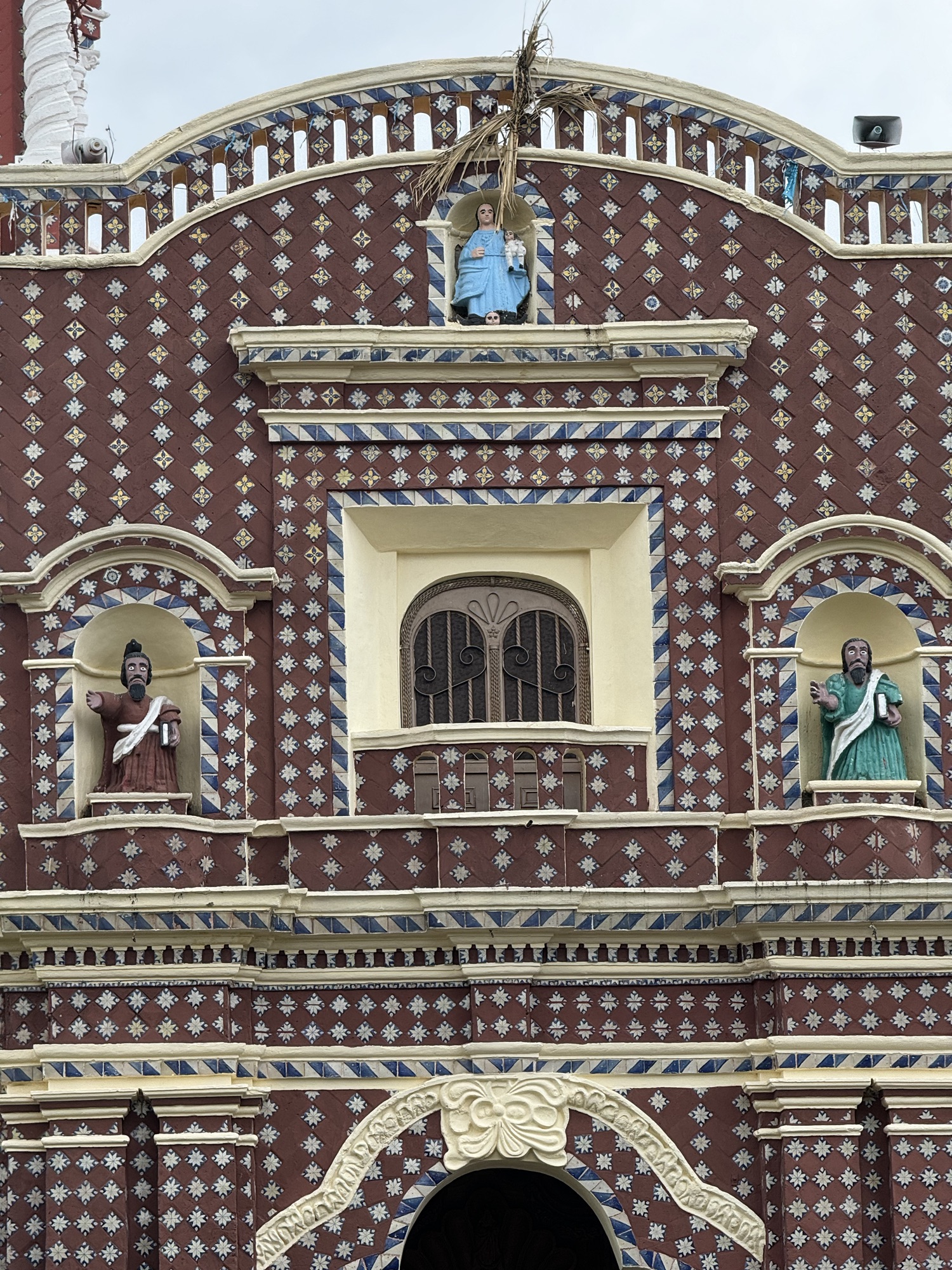 We went on to visit Tonantzintla, a small, historic town. One of the greatest attractions there is the Church of the Immaculate Conception of the Virgin Mary, considered the maximum expression of indigenous baroque. Its name in Nahuatl means “place of our little mother”, because in pre-Hispanic culture, Tonantzin is one of the names given to the goddess of corn. In 1933 it was declared a historical monument and is currently considered the third most visited temple in Puebla. What set this church apart from others we’d seen was the less “polished” style of the figures decorating the church. Indeed, they looked as though the local artists and townspeople had worked together to create them versus some artists with specific religious art expertise. It gave the church a very approachable feel.