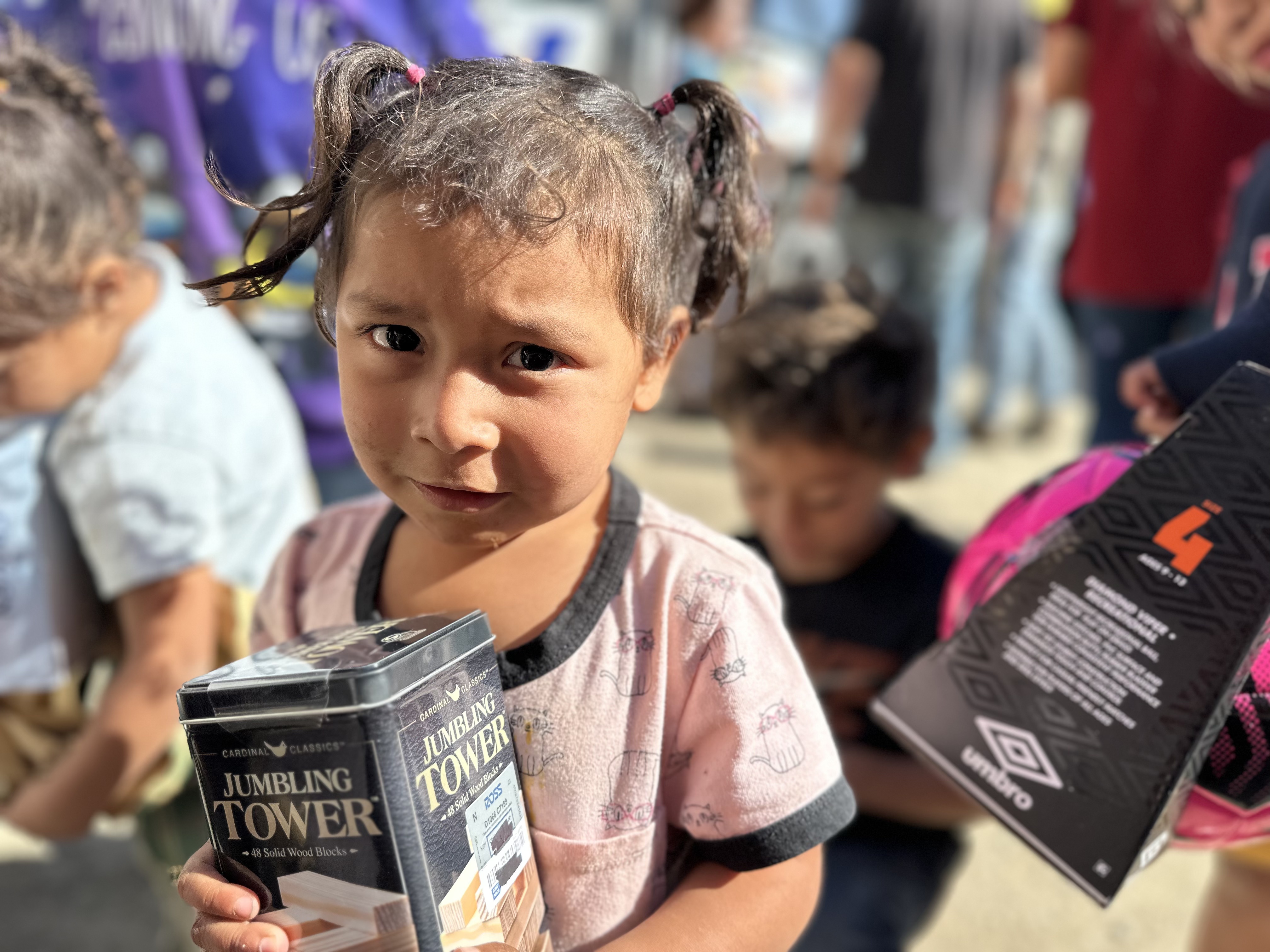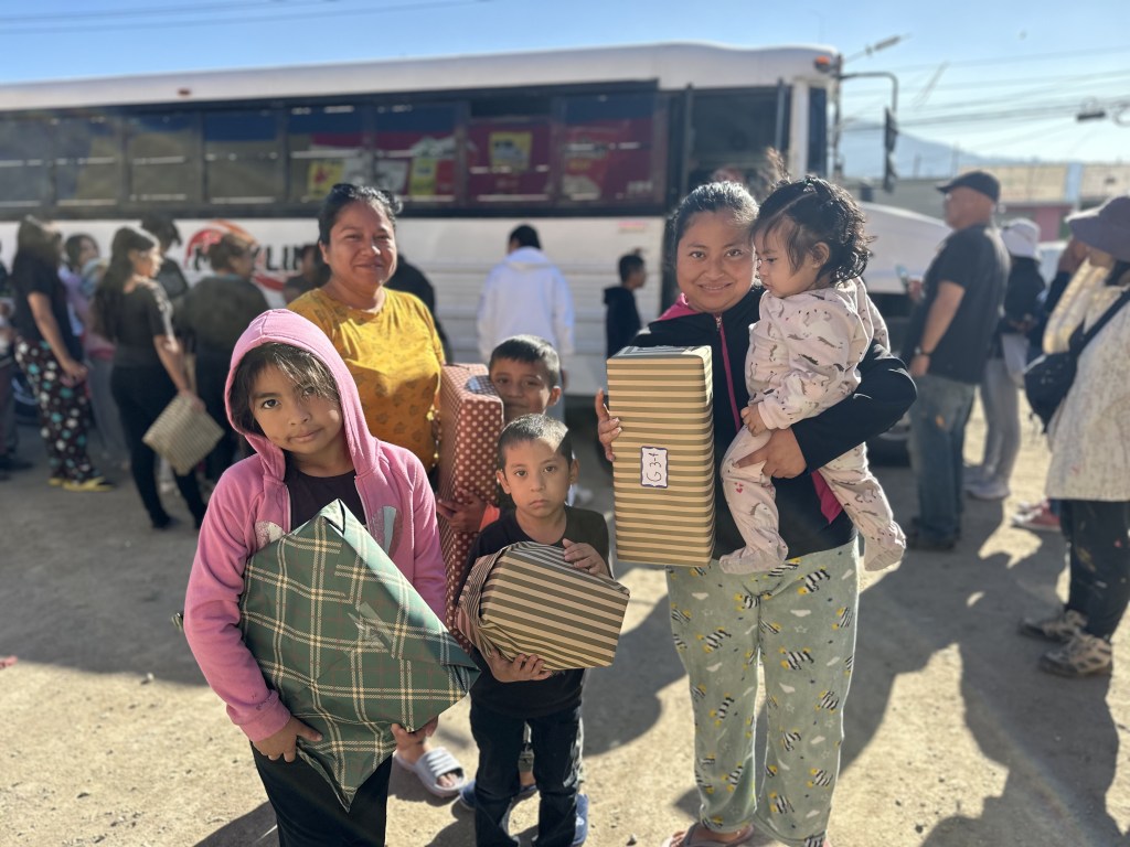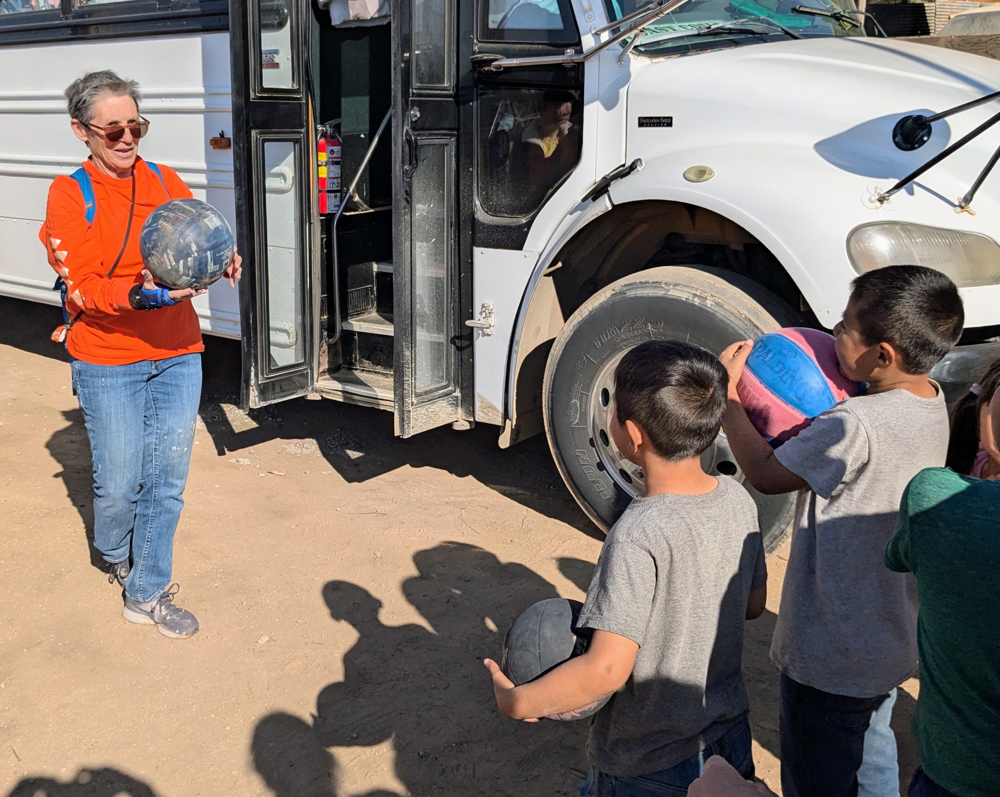 Voluminous amounts of donations were transported to the neighborhood on buses that carried the volunteers, as well as on the van Laura and I rode into the site. A few other people also chose to drive across the border, and they too brought various donations that had been collected.  Donations ranged from diapers to children’s underwear; clothing for all ages; food, items, toys, sleeping bags, blankets, pillows, stuffed animals, backpacks, household equipment, and even a huge bag of basketballs and soccer balls. We drove one of the buses into a different part of the neighborhood we were in and opened the bus. A few at a time, mothers often with a small child in tow came through and took a bag full of whatever they wanted or needed. Clearly, this was manna from heaven for many of them. There were a few families whose homes had burned down recently – they truly had nothing left.