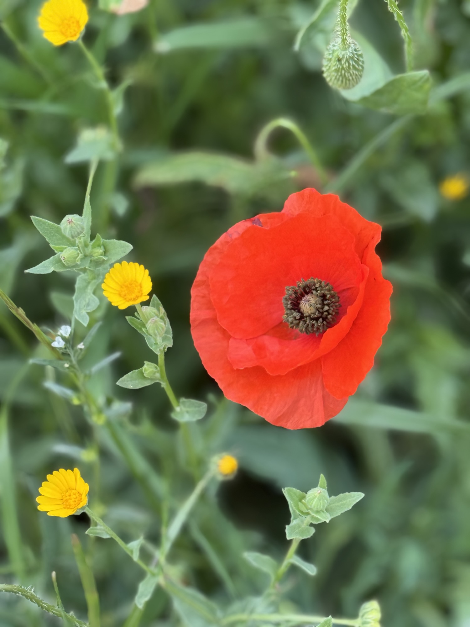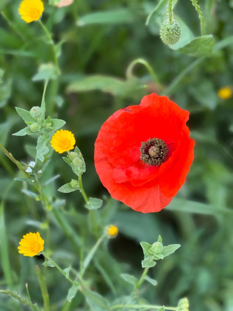 Andrew and I took a walk through the local area. As the seasons are changing the roads are paved with gorgeous wildflowers, set against what look like ancient low walls. These walls are seen across the landscape and in this area, there are lots of olive trees not yet bearing fruit. It’s very pastoral and the red poppies are incredible.