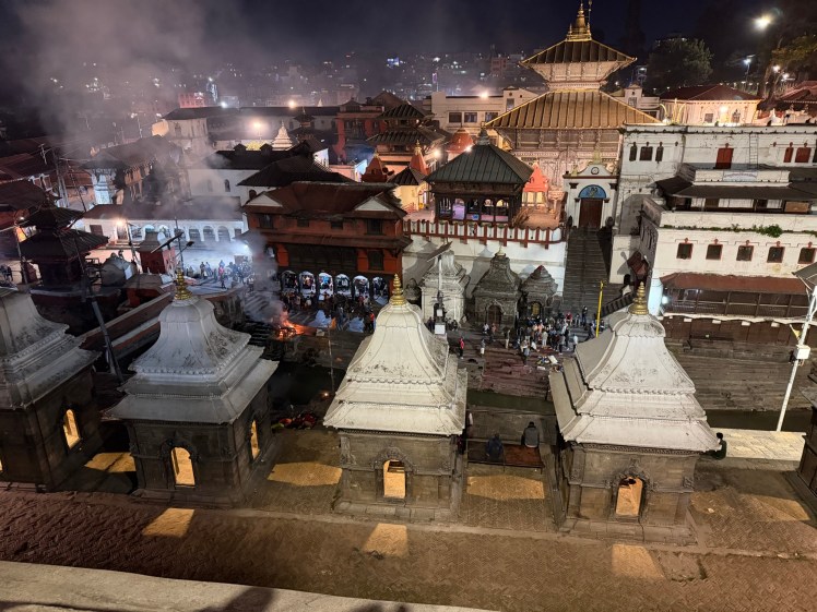 We spent the evening at Pashupatinath witnessing the very sacred rituals surrounding the death of Hindu people. This is one of the most sacred Hindu temple complexes in the world and a UNESCO World Heritage Site, dedicated to Lord Shiva in his manifestation as Pashupati (Lord of Animals). Located on the banks of the sacred Bagmati River, this is Nepal’s most important pilgrimage site for Hindus, and devotees come from all over South Asia.