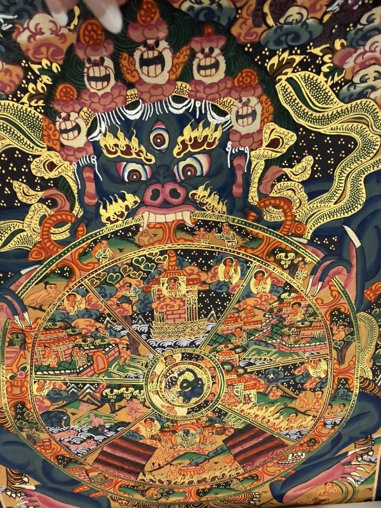 Strolling the side street near the square, we spoke with an expert in Buddhist philosophy who is also a painter of mandala‘s and other symbolic items. I had a long conversation with this expert and ended up purchasing two small paintings – one of the Wheel of Life and one of a traditional mandala. He was kind to text me explanations in English about the symbolism in each of the paintings.