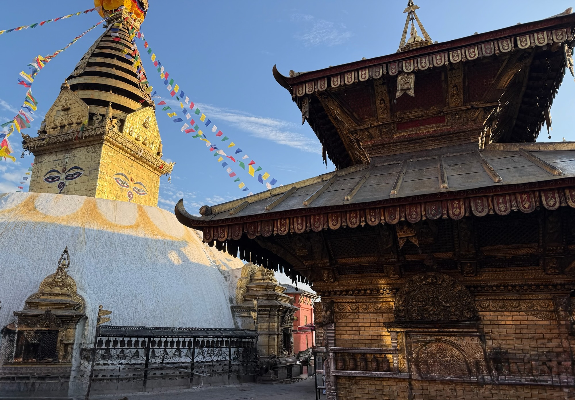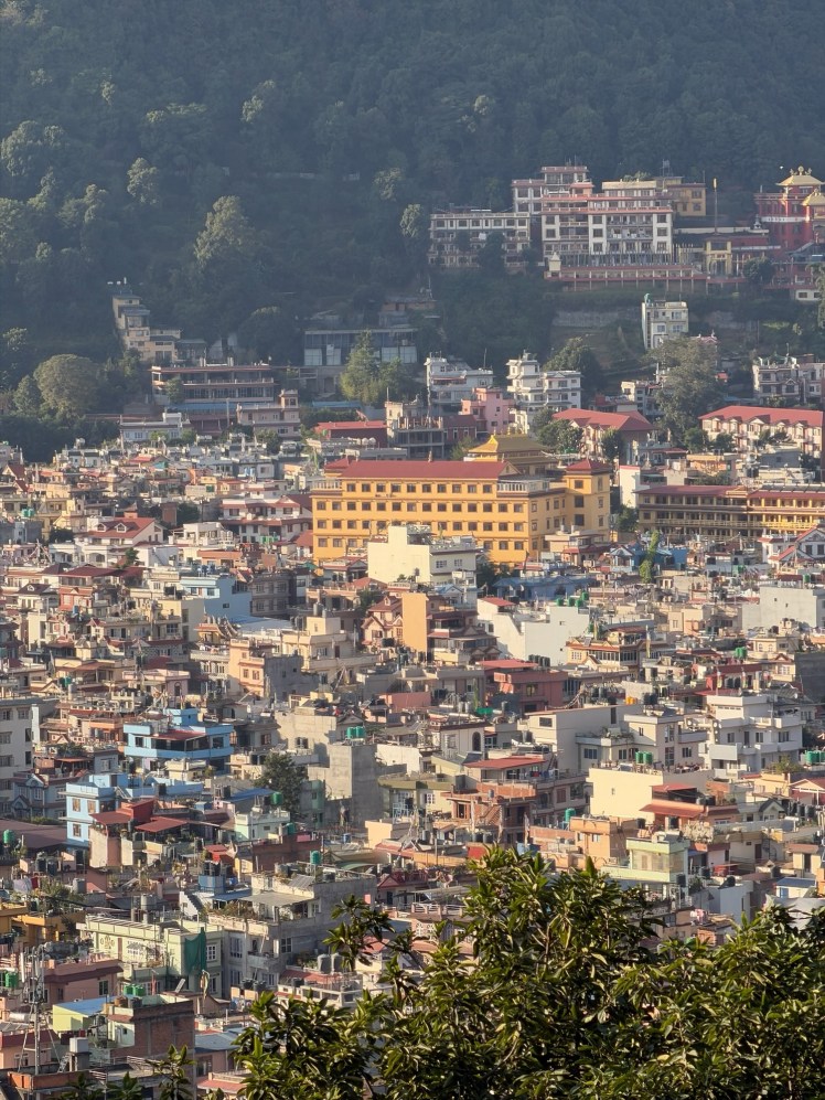One of many memorable moments on this Nepalese adventure was to Swayambhunath – also called the “Monkey Temple”. Let me explain. Swayambhunath is an ancient religious site built on a hill overlooking the Kathmandu Valley with incredible views (on a clear day, which we had) of the entire city.
