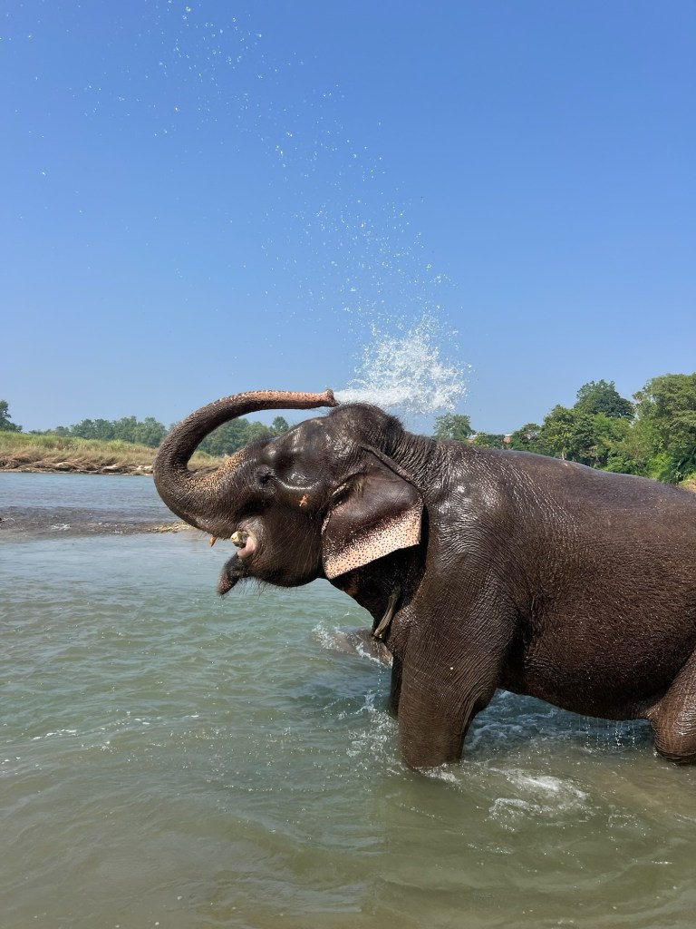 That photo of you and the elephant in the water is a keeper!