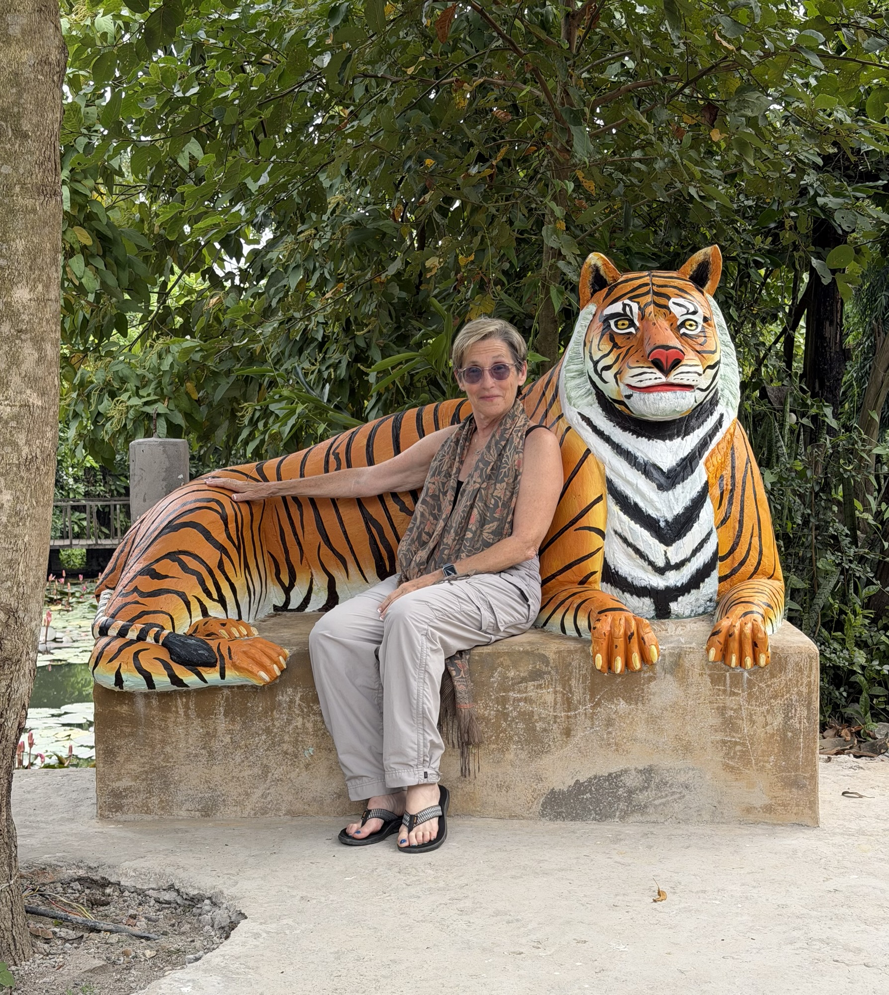 Before winding our way to the elephant sanctuary itself, we stopped to have lunch at a restaurant that Michael recommended but had never been to. It was right in the middle of a neighborhood village and had a quiet, shaded patio area where I met my first Bengal tiger…