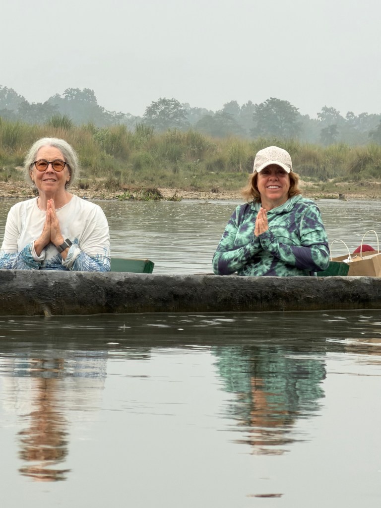 We started this day at 6:30 in the morning, walking down to the riverside and climbing into very low canoes. It was incredible to me that the village we were staying in is in such close proximity to a truly wild jungle. Along the way we were told that in years past there were villages that were inside the jungle itself – you can imagine what the inhabitants had to content with surrounded by predators. There came a point when the Nepalese government decided to officially preserve the jungle as a national park and paid to move and resettle these villagers on the outskirts of the park. Sauraha was not resettled as it was just outside the designated park area. That said, it is only a narrow river and a short suspension bridge that separate villagers from jungle activities. As I saw, rhinos are able to wander into the center of town and we were told stories of wild elephants causing dangerous encounters with people.