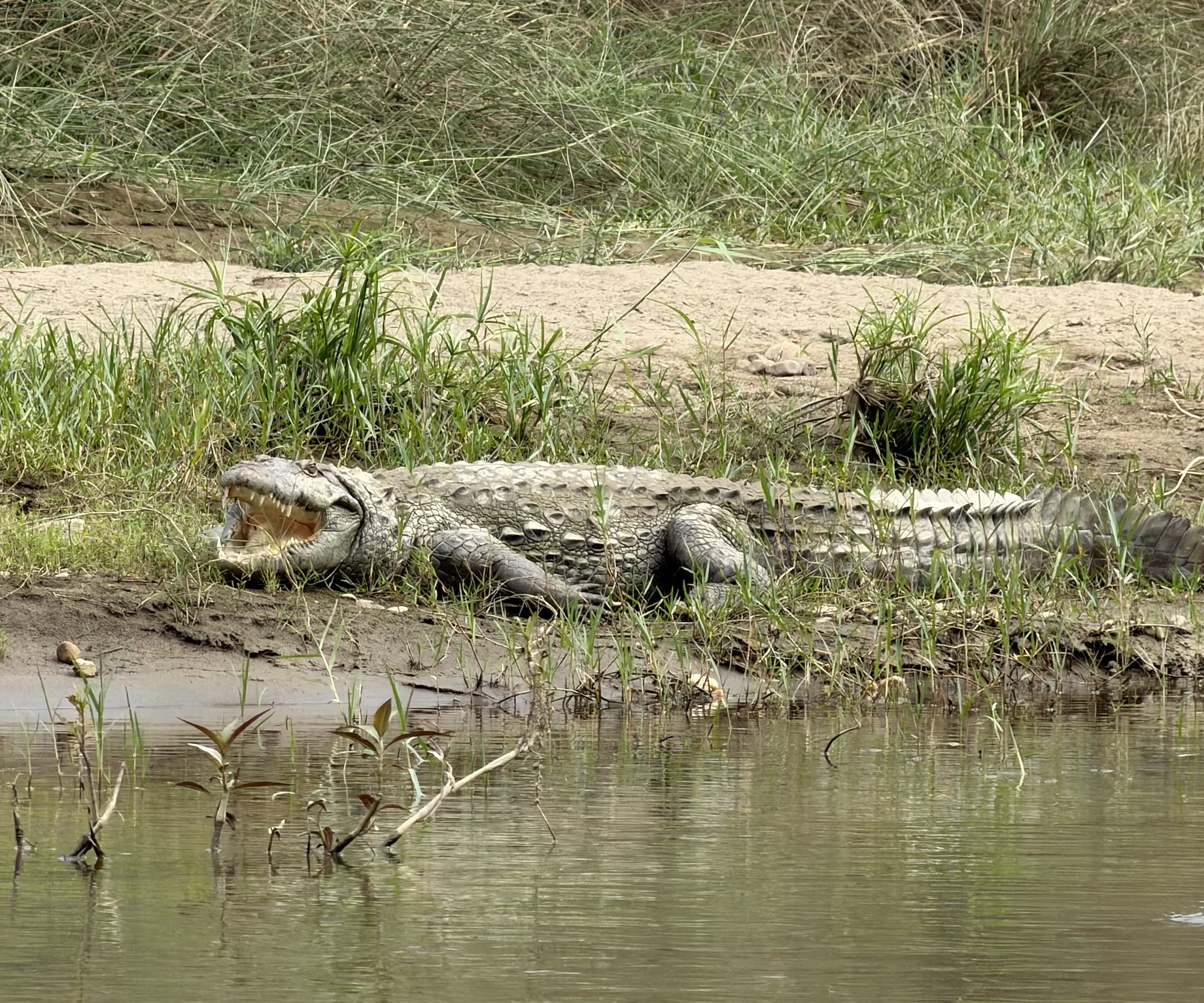 The water level was just inches from the top of the canoe, but the river was very calm and water fairly clear. The guides knew what they were doing. We were in the canoes for about two hours – fortunately it was a bit overcast and as calm as the water was, it was very peaceful sitting and just watching the world wake up. Along the way we saw many different kinds of birds, a few crocodiles, and a variety of terrain.