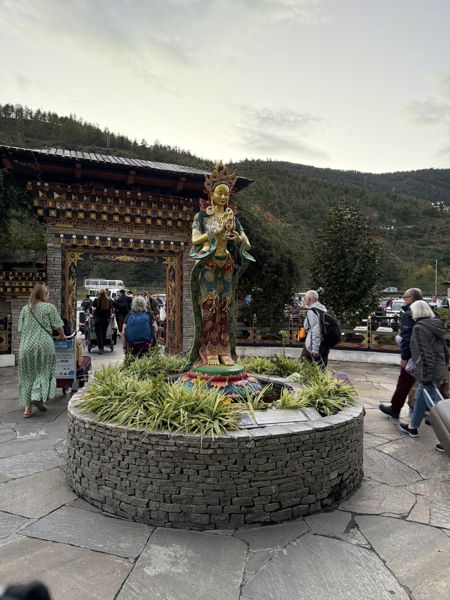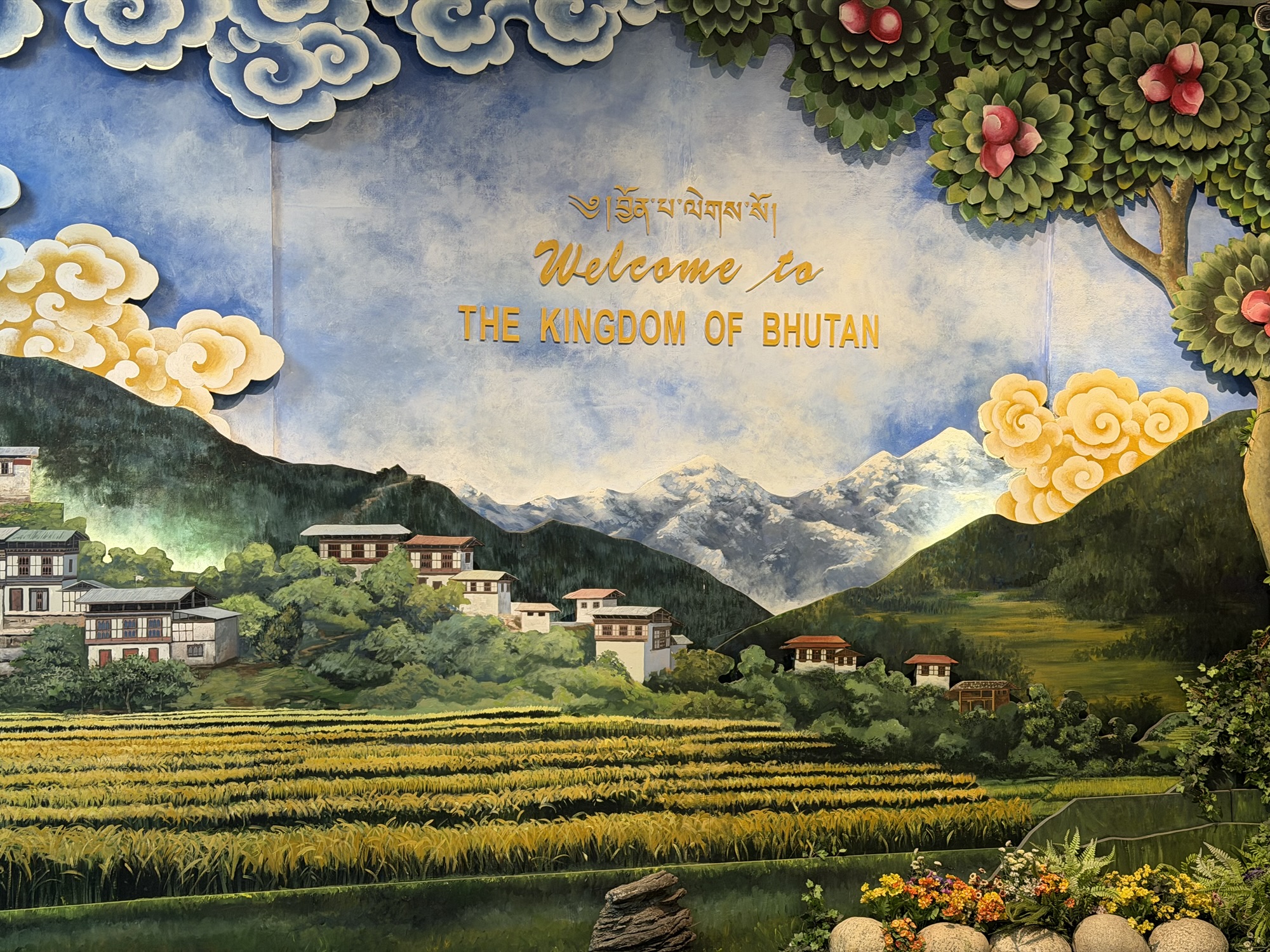The flight to Paro was very beautiful with the Himalayas peeking through the clouds. Flying down into the valley to land in Paro was as beautiful as pictures I’ve seen. It’s also considered to be one of the most difficult landing for pilots as it’s a steep descent and short runway. 🫣