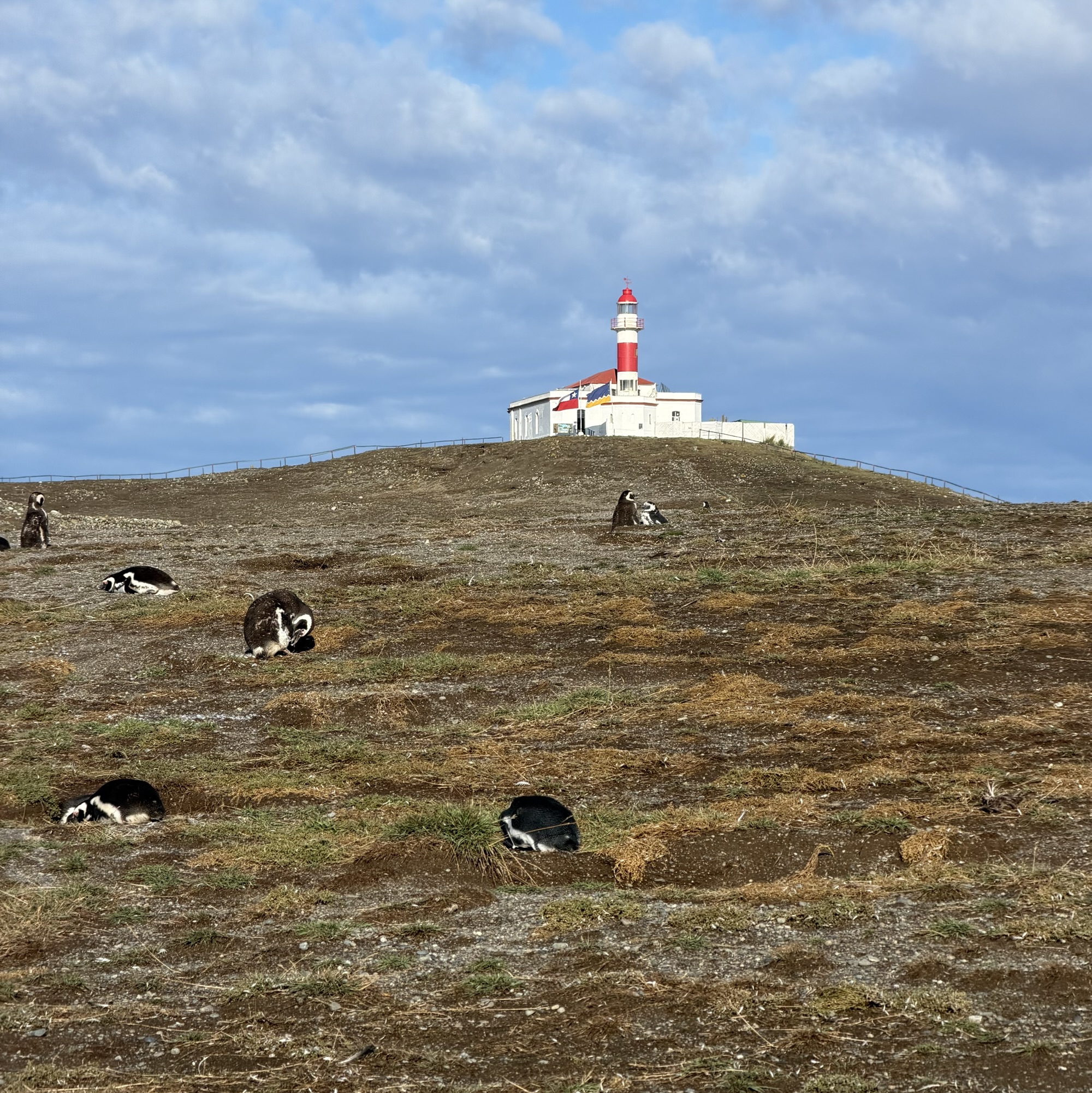 Before heading up the other coast of the continent we had a few other very scenic stops with admittedly similar sightings of wildlife, as well as additional passes by glaciers. From Punta Arenas we took a tour of a penguin preserve on Magdalena Island that was on a vast hillside with a lovely lighthouse at the top. The trail that we wandered through allowed us to see closeup the penguins who unfortunately had been left behind as the mass of the population had already taken off to migrate north. Most were young who had not molted completely so they could not swim and fly well, and many were pairs of what looked like older juveniles and seniors who for whatever reason stayed behind. A bittersweet sight.