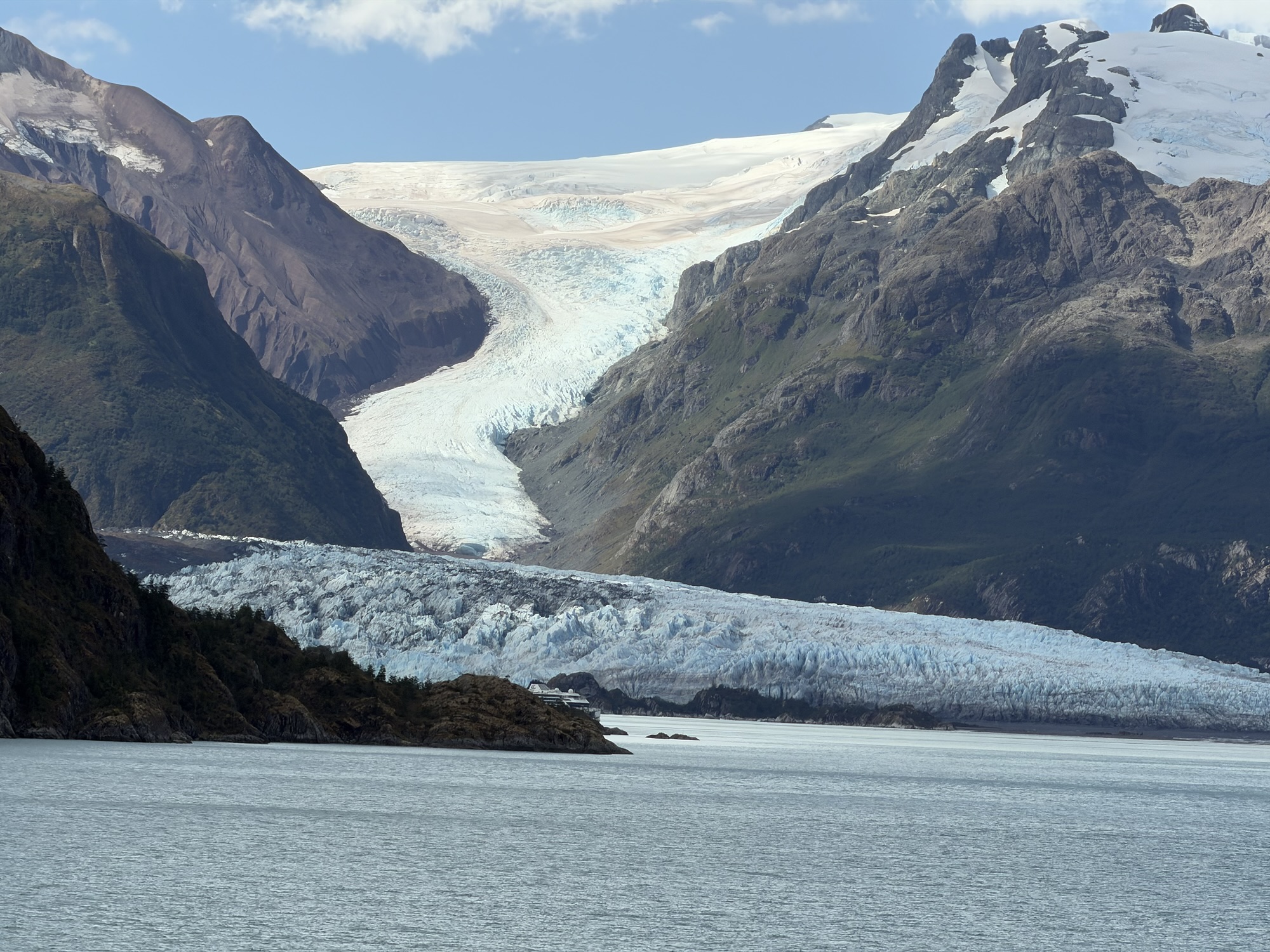 The next couple of days were spent cruising through the beautiful Chilean fjords – lush green mountains smattered between glaciers that wound their way down the hillsides.