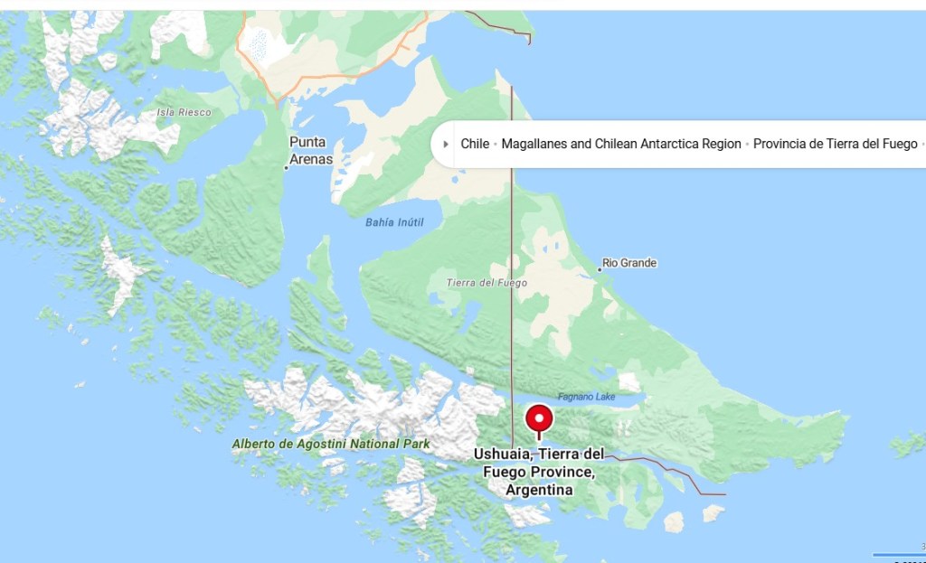Ushuaia is also called El Fin del Mundo, the end of the world. It is the southernmost city on the South American continent before hitting Antarctica! The Drake Passage is the body of water between Cape Horn in Chile at the southern extreme of the South American mainland and the South Shetland Islands of Antarctica. It connects the southwestern part of the Atlantic Ocean (Scotia Sea) with the southeastern part of the Pacific Ocean. The passage is named after the 16th-century English explorer Sir Francis Drake. Crossing the Drake Passage is considered one of the most treacherous voyages for ships to make – it truly is the place where two oceans – and their strong currents – meet. That’s why our captain (and many other cruise ships) choose a path of much less resistance…through some beautiful glacial alleys and fjords at the tip of Chile.
